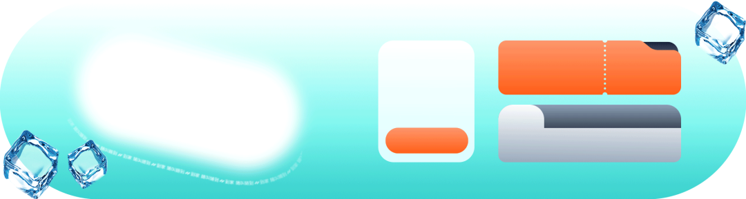 为降低夏天带来的炎热不适,质感上我们希望能够营造出冰冰凉凉的感受,为用户带来一丝清凉。不过模型材质上设定的基础版,如果要更加体现夏日的质感,需要更多细节处理。所以在3D材质上我们增加了透明材质,打光上也尽量多的体现材质细节。对比春节大促时的画面,同样的模型呈现出了更多的细节和质感。同时在画面的其他模块中,也统一玻璃质感,完整地传达夏日感。