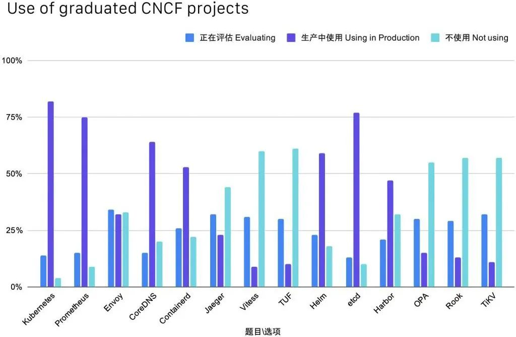 2020年,云原生热度继续升温。调查显示,中国社区的 CNCF 项目使用量增长了 64%,2 个来自中国的项目Harbor 和 TiKV毕业,使用量出现跨越式增长。