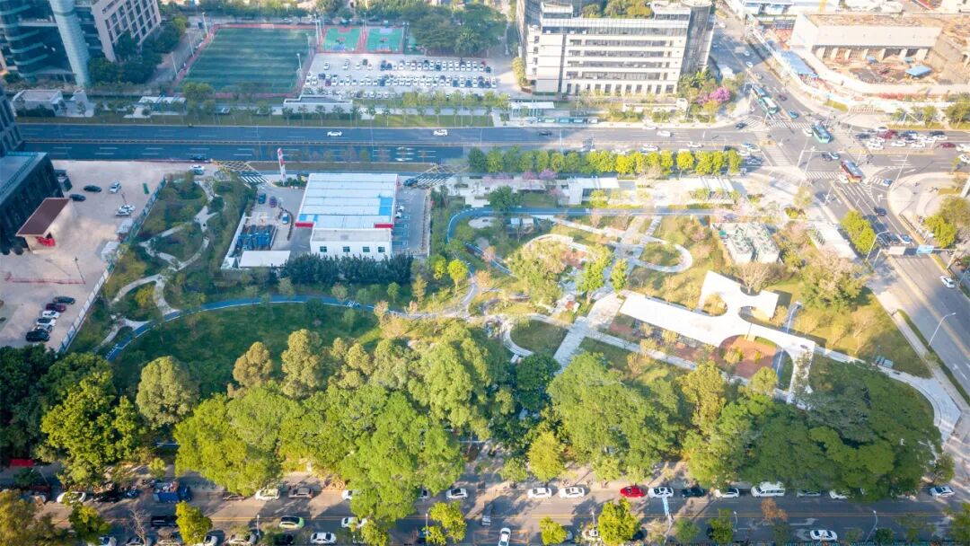 场地原为科技园南区空置足球场,现状空旷平坦、功能单一、四面围合,不能满足周边人群需求。项目建设将提供多样复合空间,满足不同活动需求,增进片区人群交流;塑造文化艺术性公共空间,打造品质生态艺术空间,提升城市品位。