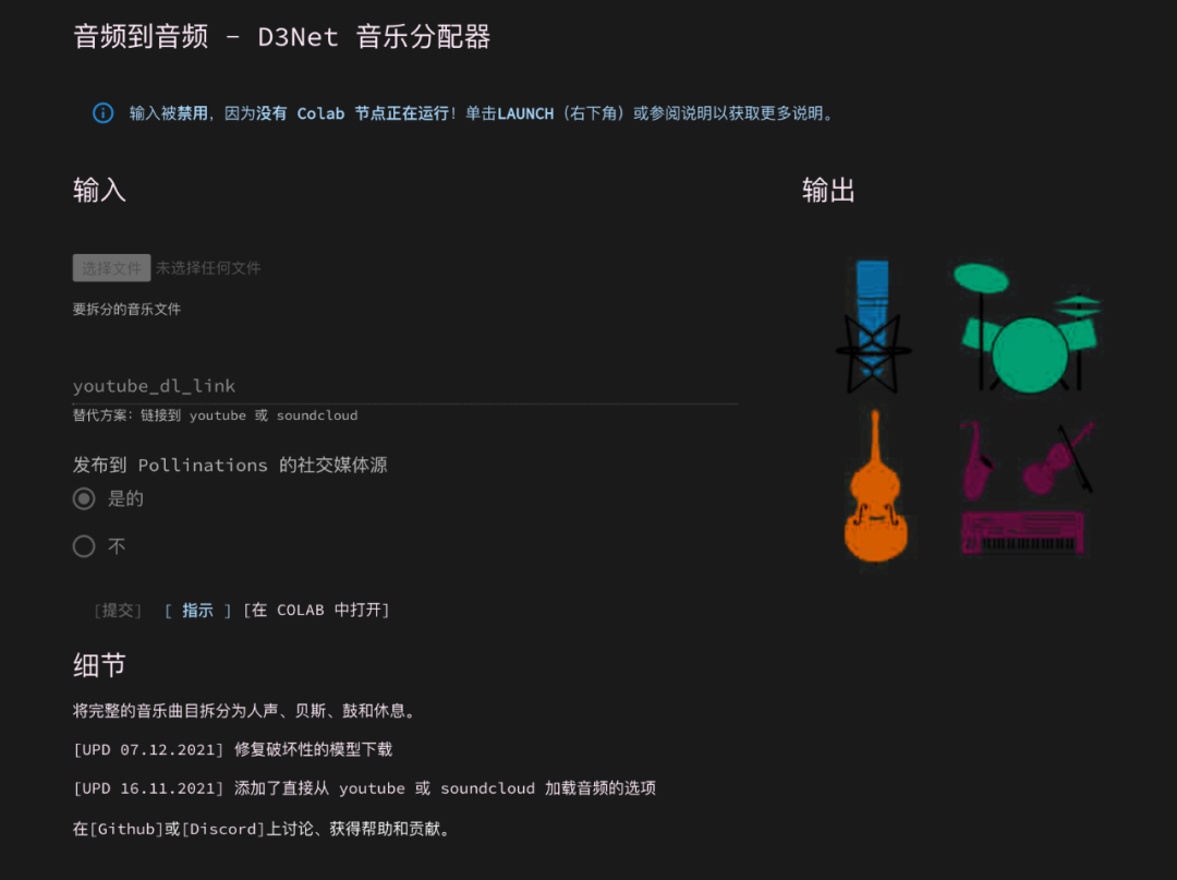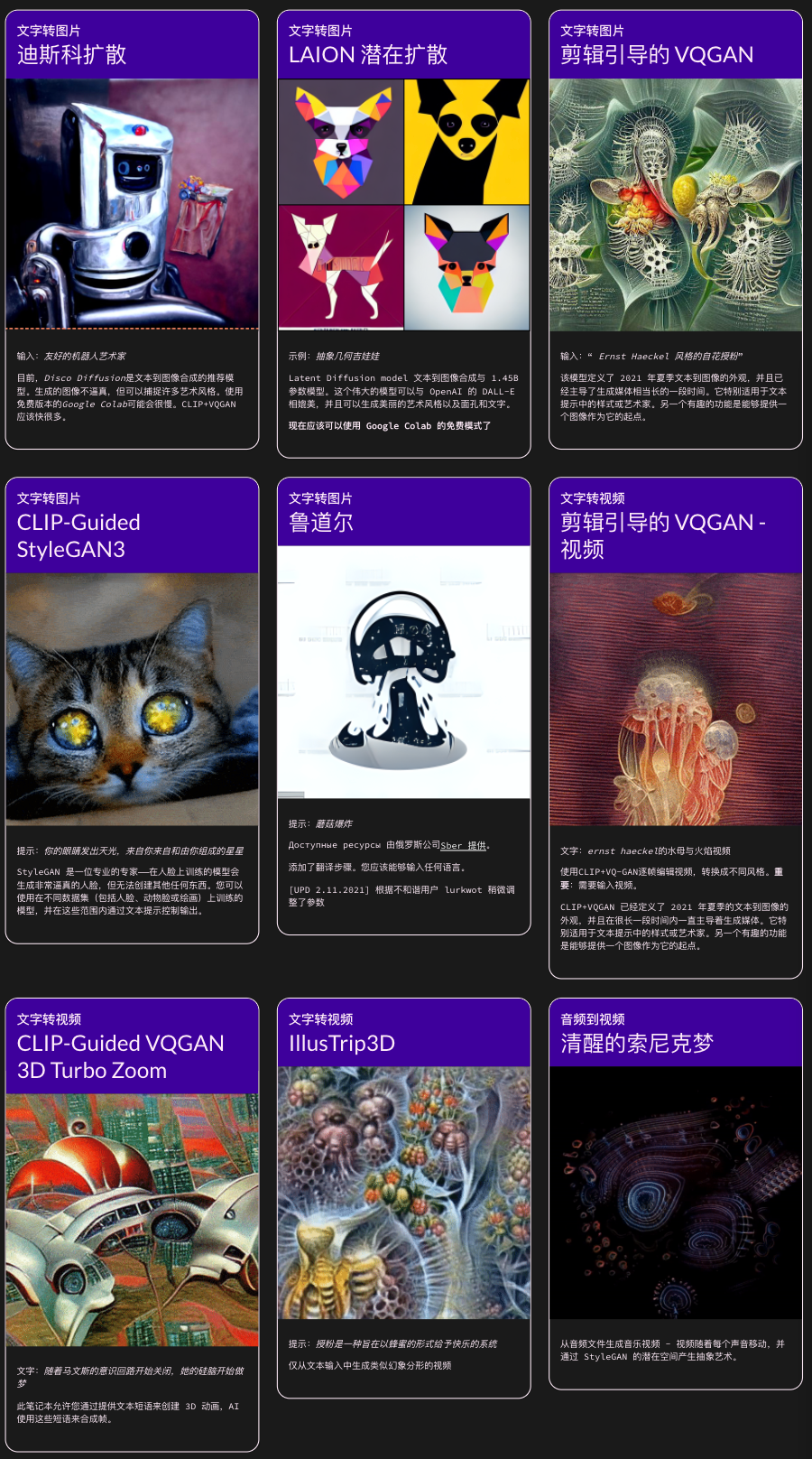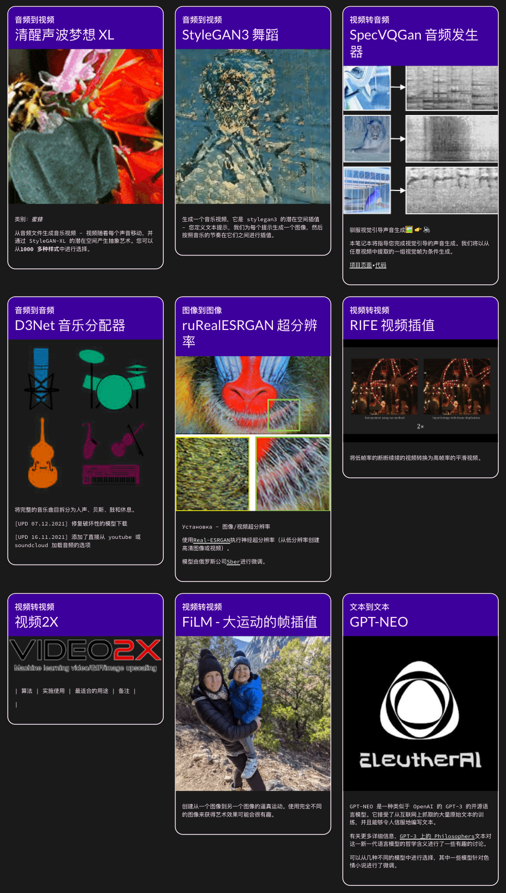 Pollinations.ai 平台集成了多个谷歌 Colab 算法模型,可以作为对AI 生成式创作感兴趣人群的工具库。