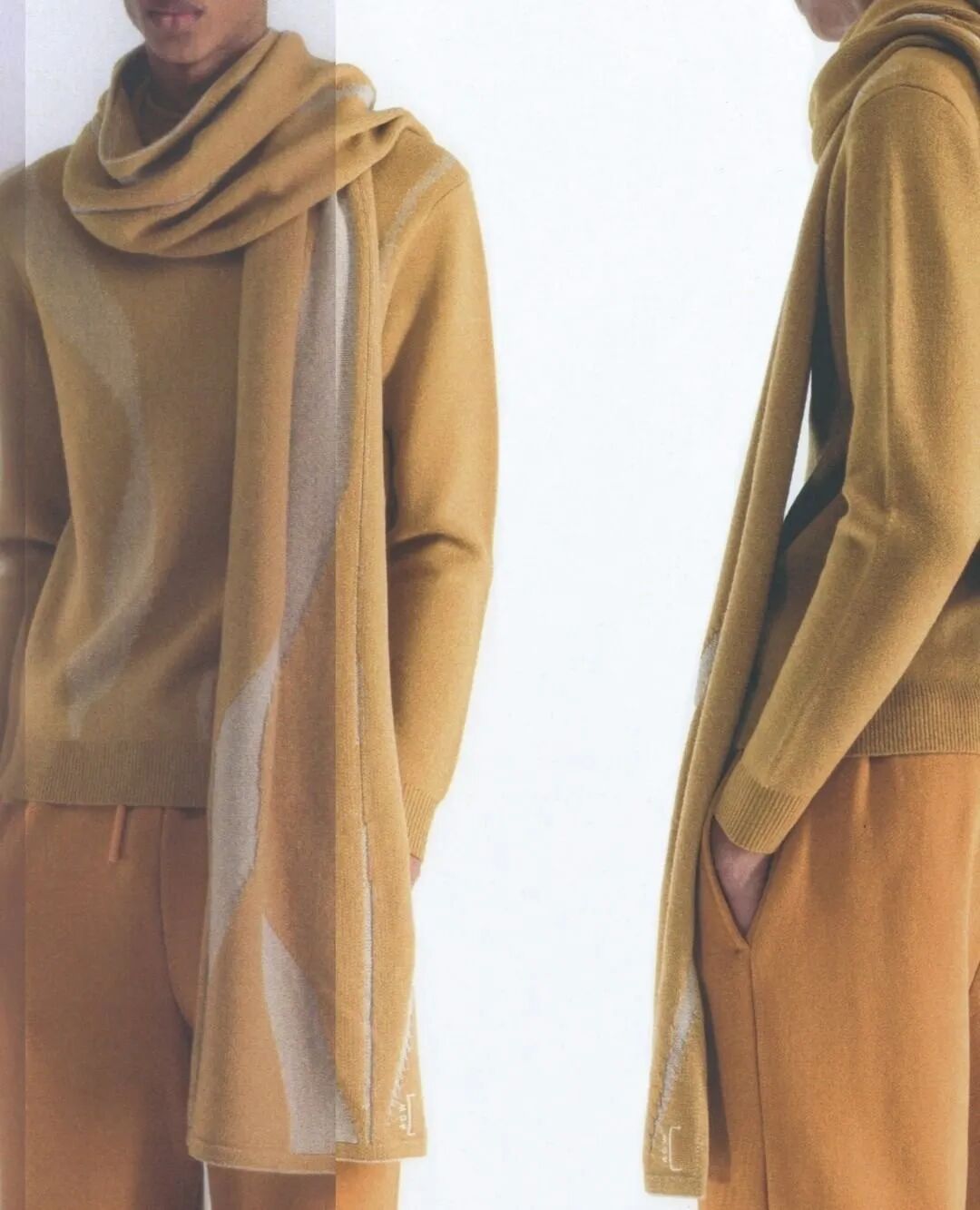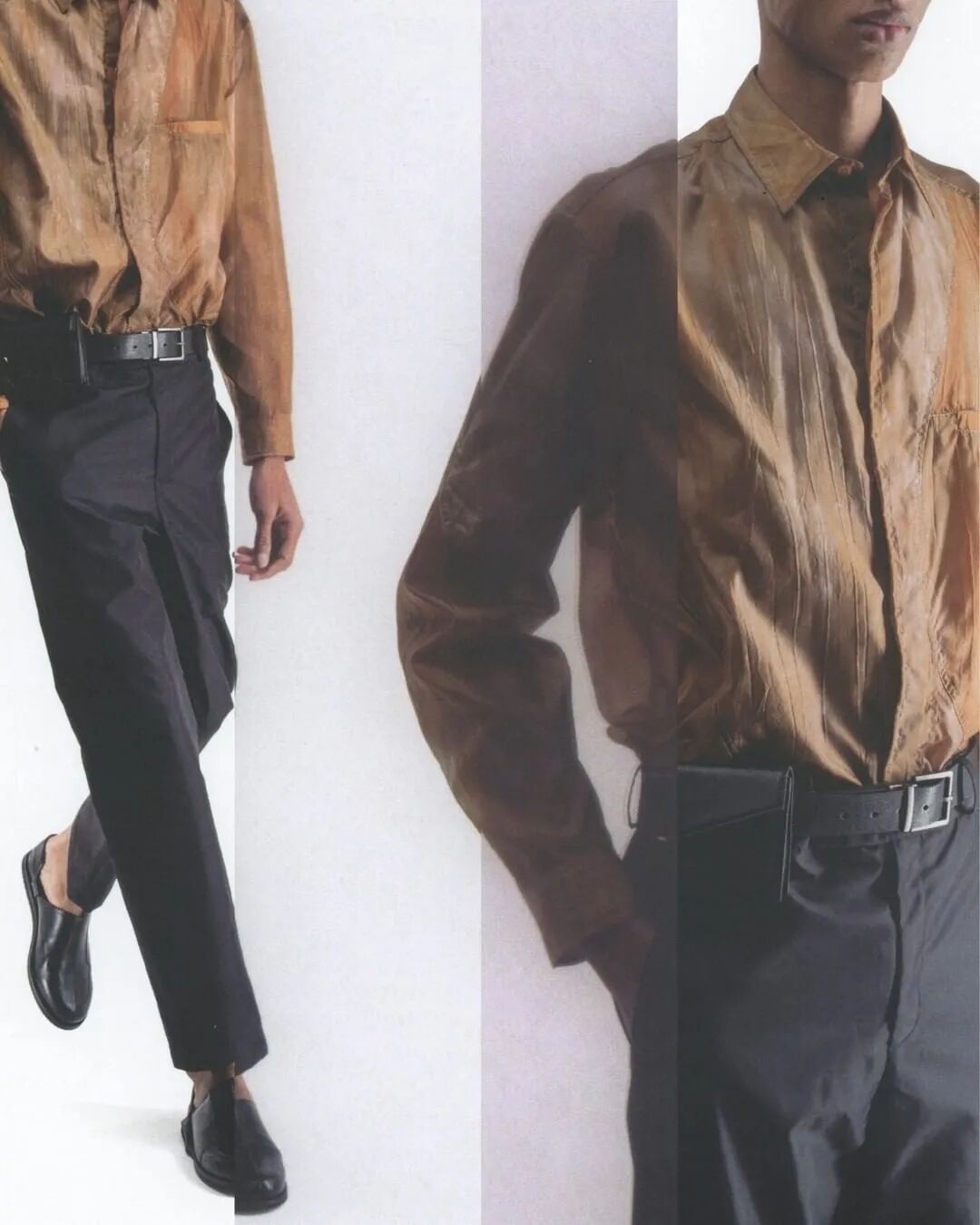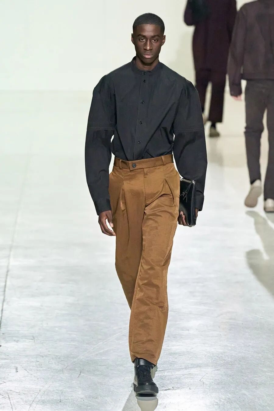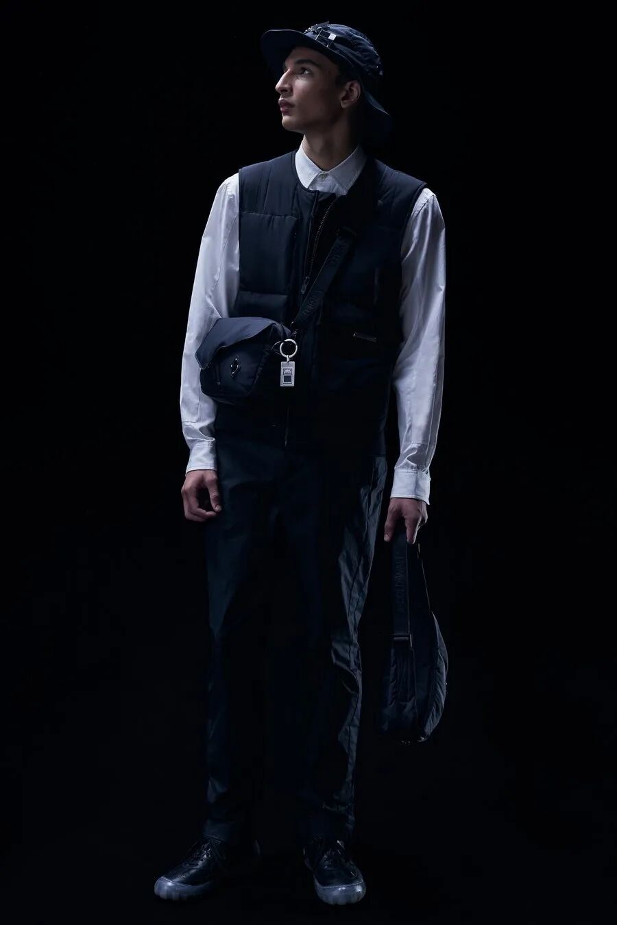 符合人体工程学的护甲/背带、无领衬衫、褶皱的夹克、带有拼接的针织衫…工业风混合着时尚的高级质感,都让人们看出了Samuel Ross对20世纪西装的经典剪影的致敬。