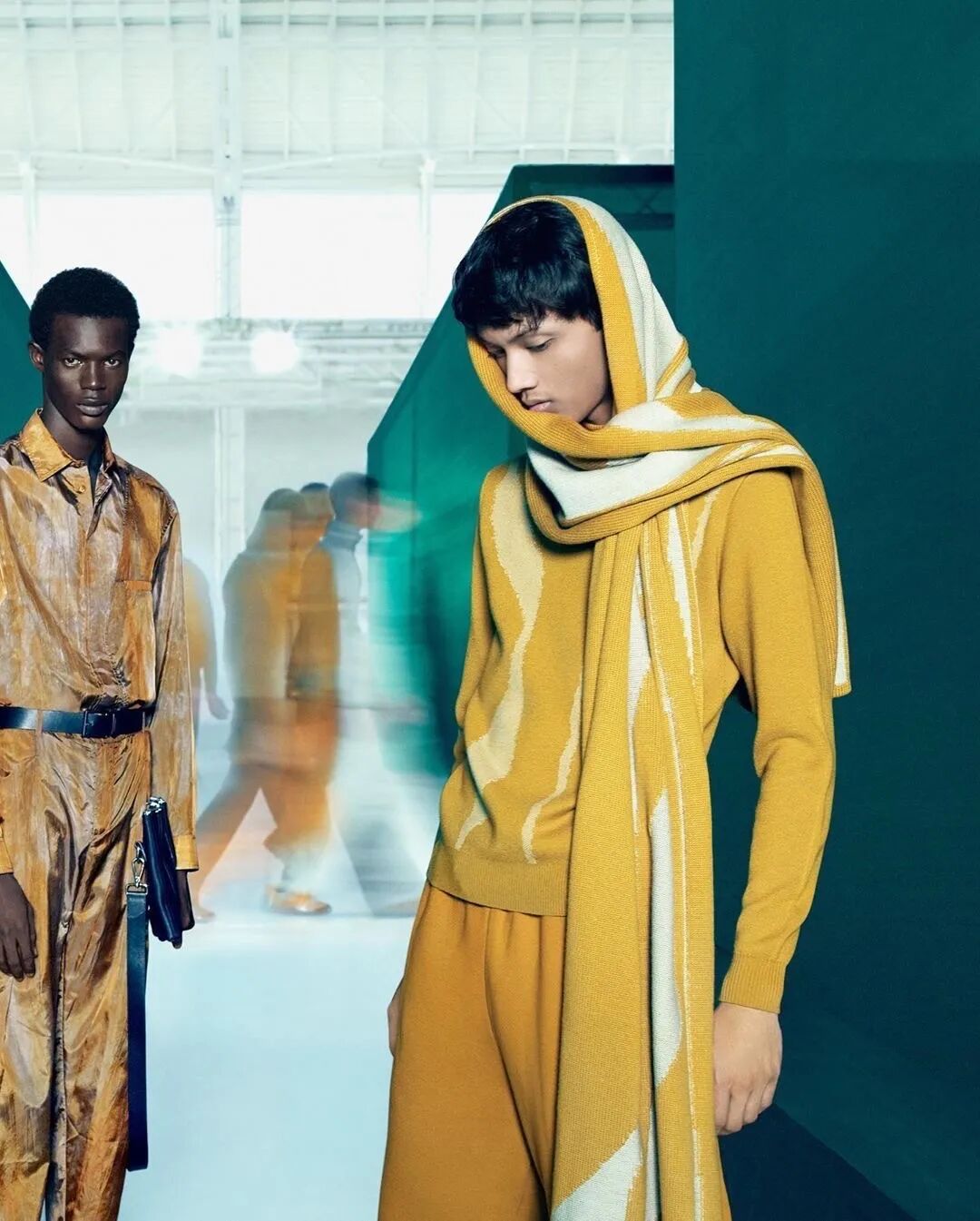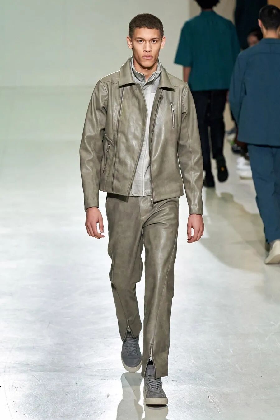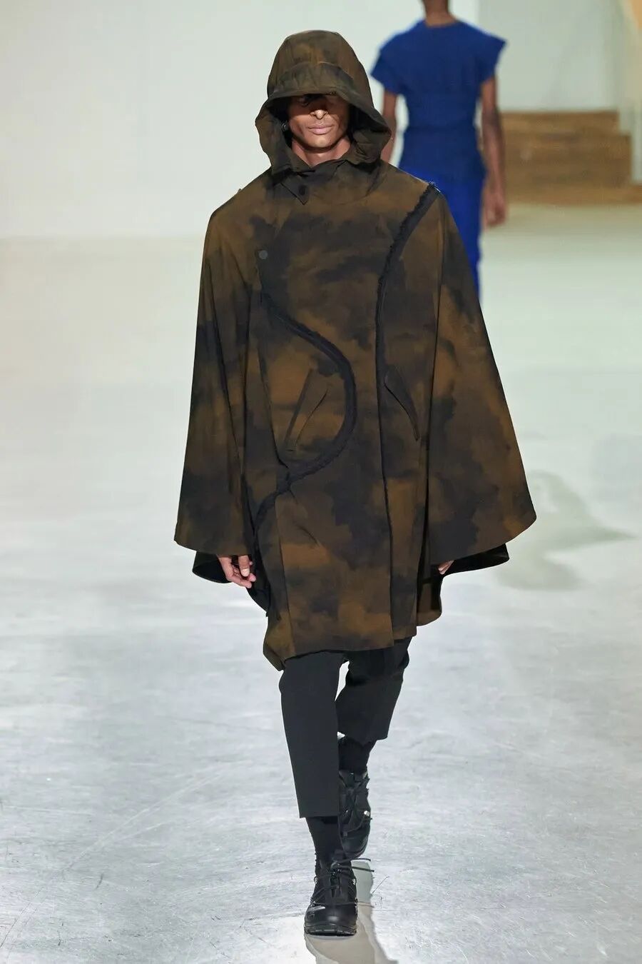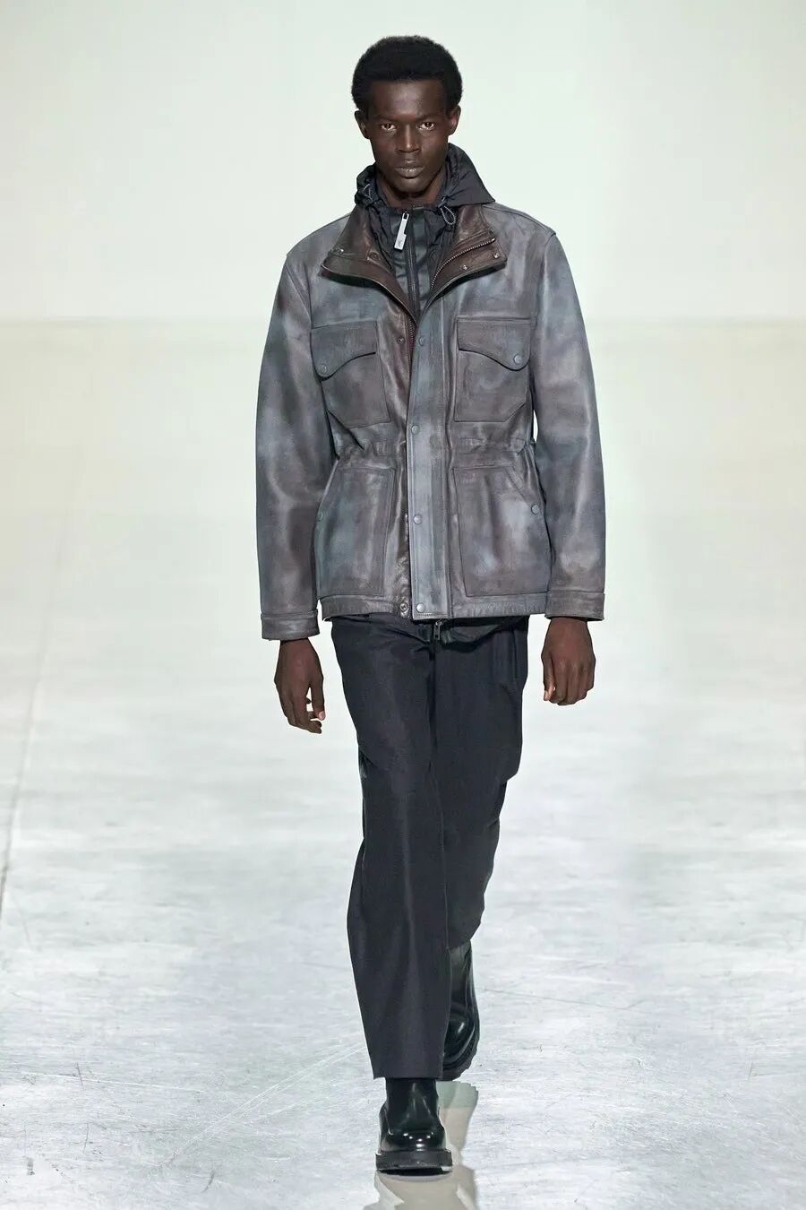 你还能在Samuel Ross的秀场中看到钢架支撑起的装饰、精致在新衣服上的墙灰、剑走偏锋的金属装饰…这些带有工人阶级色彩的元素在Samuel Ross的设计下,透露着时尚赋予的高级。