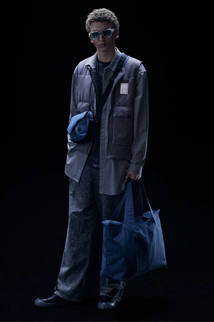 而在新一季中,Samuel Ross将扎染牛仔与运动衫搭配在一起,强调着一种轻快的感觉,不同色调的分层与古铜色系营造的视觉效果,展现着一种工业风带来的舒适。