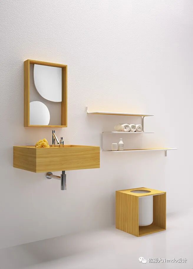 我们设计这个浴室系列的目的是通过将浴室套房的各种元素组合在一起,创造一种强烈的独特印象,就好像它们“都在浴室里”。在温泉或当地的公共浴池里与陌生人泡澡时产生的亲密感是日本文化的重要组成部分。我们为Bissazza设计的浴室系列通过设计表达了这种感觉。该策略的两个关键部分是展示不同元素的细节,就像它们被一起存储在一个盒子中一样,以及在使用多个元素时能够很好地组合在一起的元素。水龙头位于洗脸盆和浴缸内,浸在水里,旁边是像肥皂分配器或水杯这样的配件。放置在盆内的托盘成为需要保持干燥的物体的一个岛。洗手盆架将洗手盆围在一个木框内,水管通过木框从地板上升,进入水龙头。镜子玻璃在不同的地方被移除,以模仿水池的效果。这强调了镜子驻留在一个框架的印象。花盆被设计成盒子状,这样就可以堆叠起来。小陶瓷容器可作为牙刷架,花瓶或其他物品的架。容器的形状经过精心设计,便于多次使用。挂钟也可以以多种方式排列,创造出横向连续性的视觉效果。