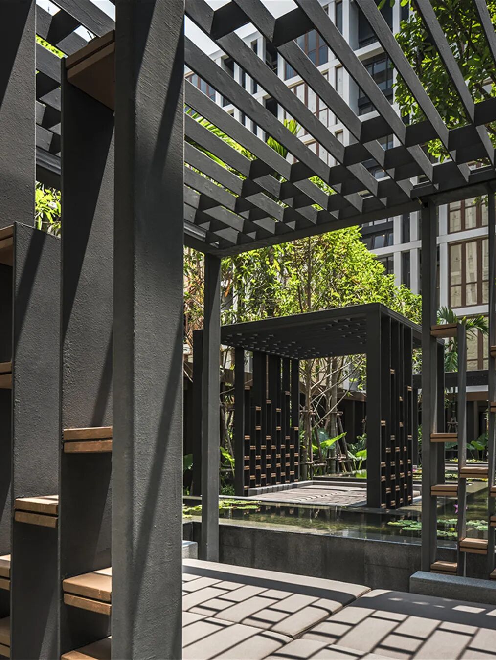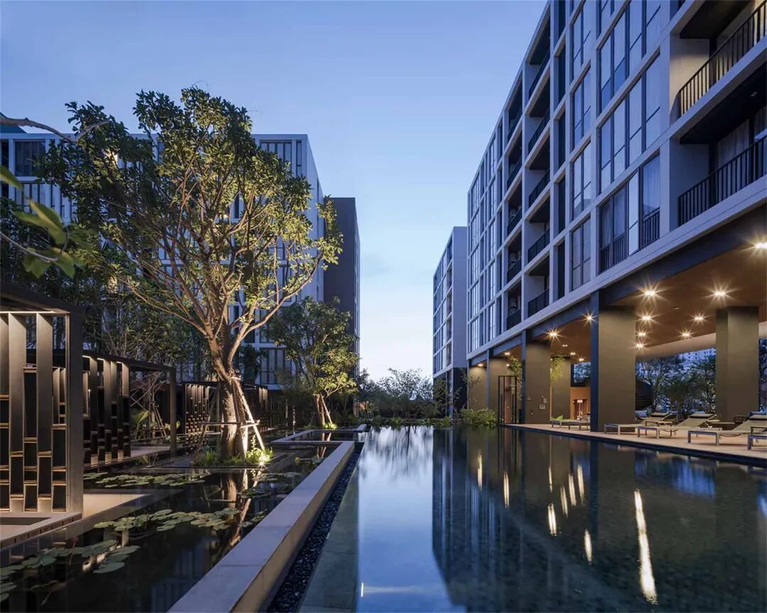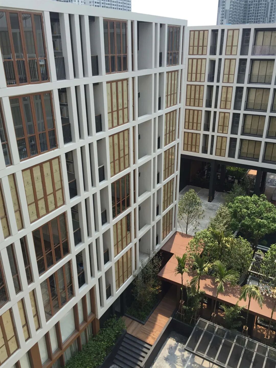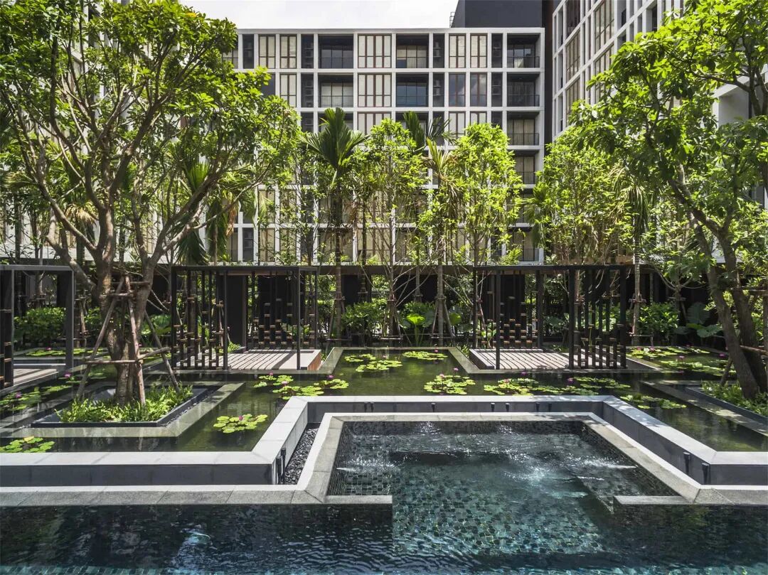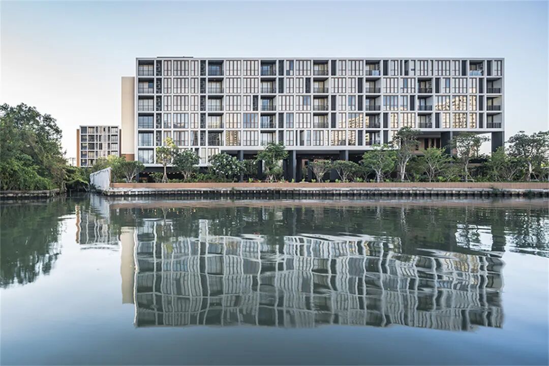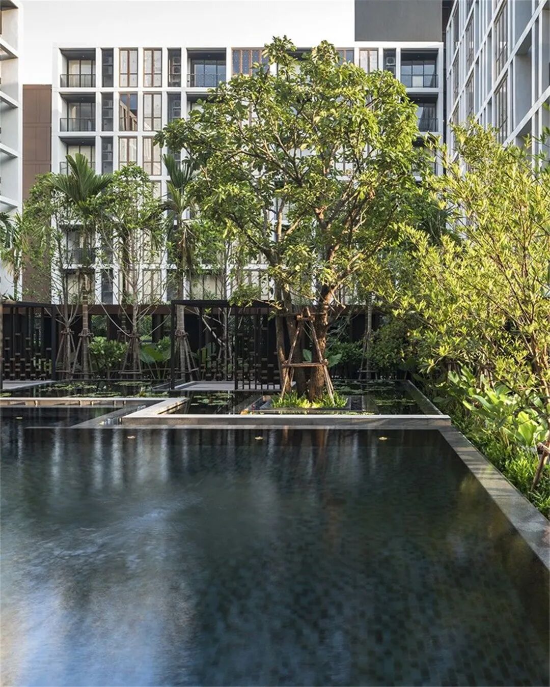 这座7层高的住宅,共有333个单元,建筑设计以泰式典型的运河沿岸房屋和后院花园为灵感,将现代与怀旧完美融合。