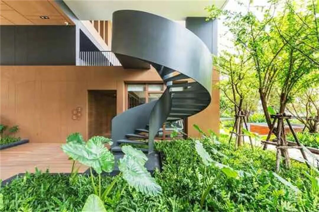 除了公共户外区域,健身房和图书馆也是沿着运河布置,他们的平屋顶成为了二楼的露台,可通过雕塑般的螺旋楼梯进入。