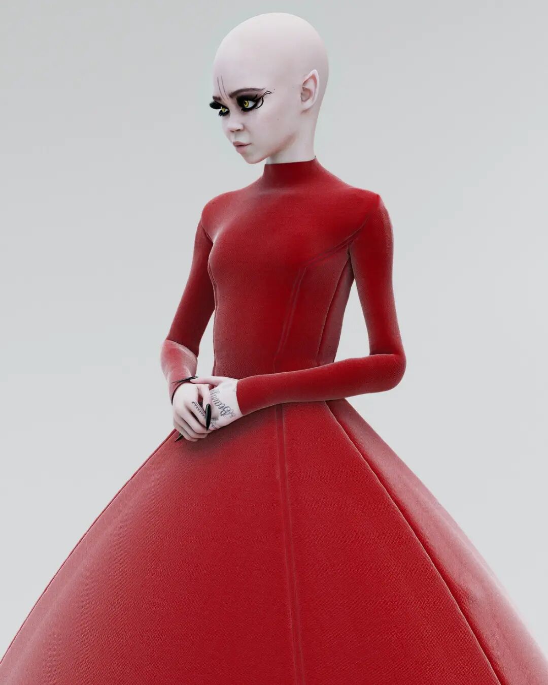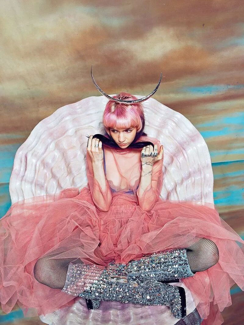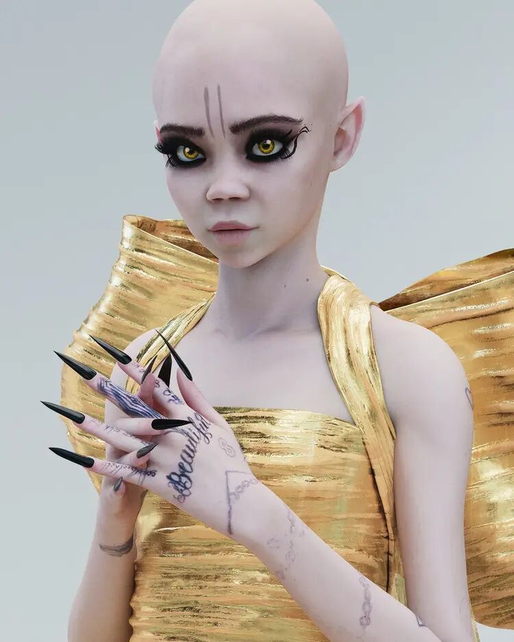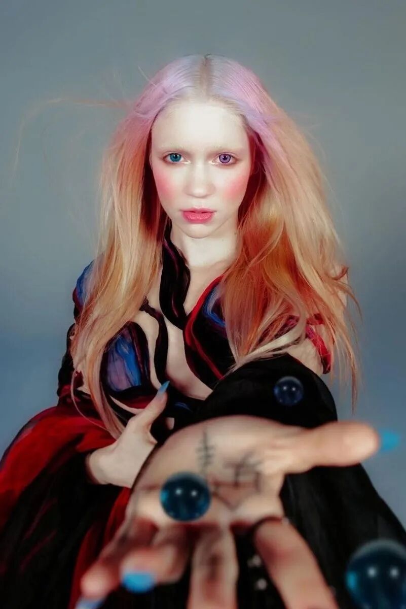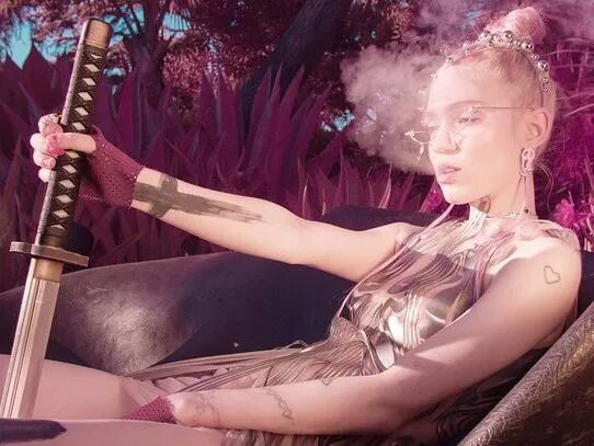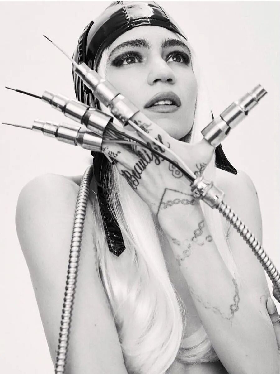 Grimes 的世界并不仅仅由音乐组成,而且是一个融合了音乐、视觉艺术和时尚的多面世界——她的文化参考范围从动漫到宝莱坞电影,从超级英雄到迪士尼奇幻系列,从美少女战士到权力的游戏,从中世纪战士到人工智能。