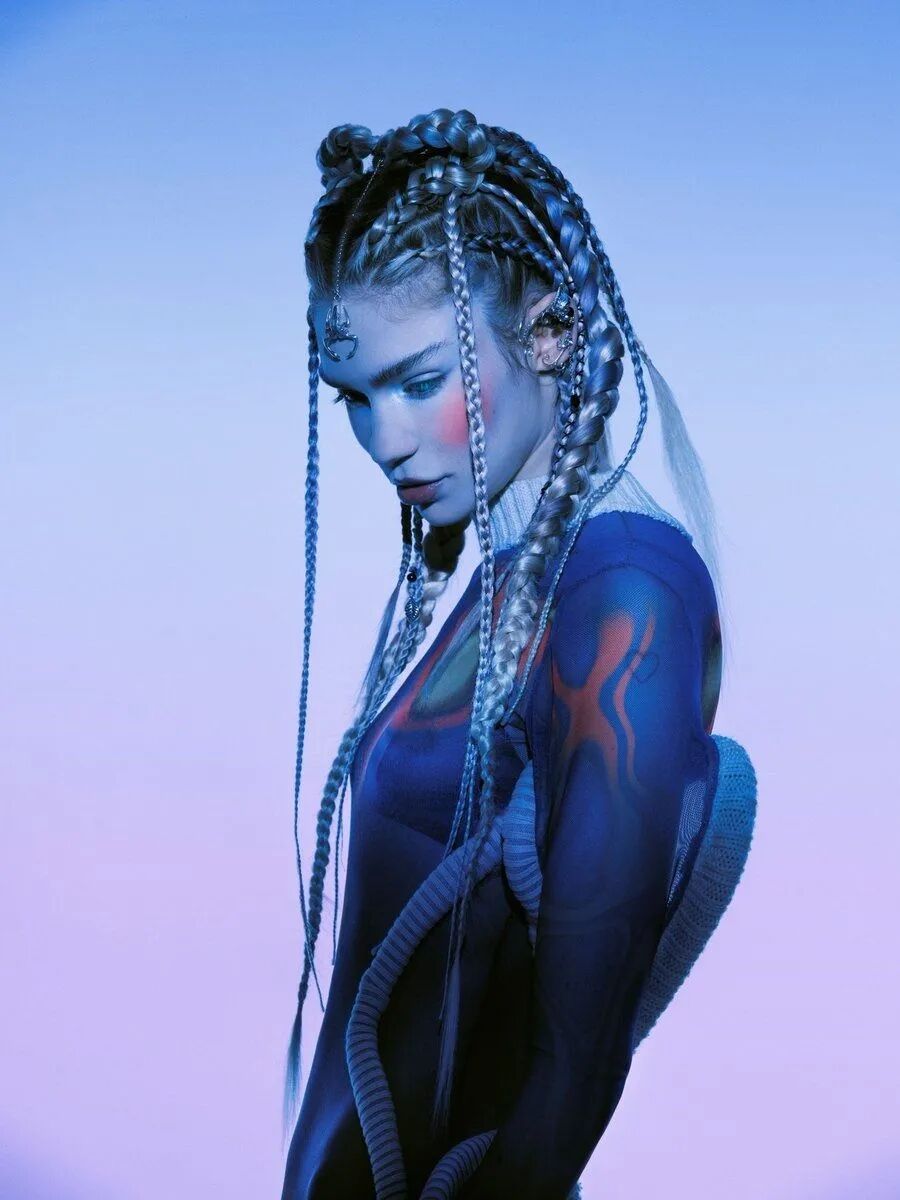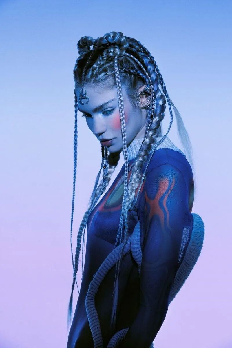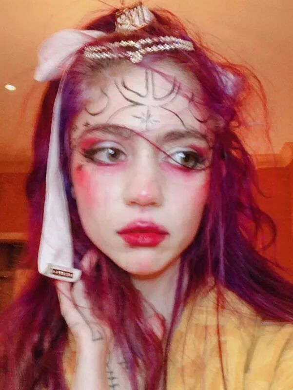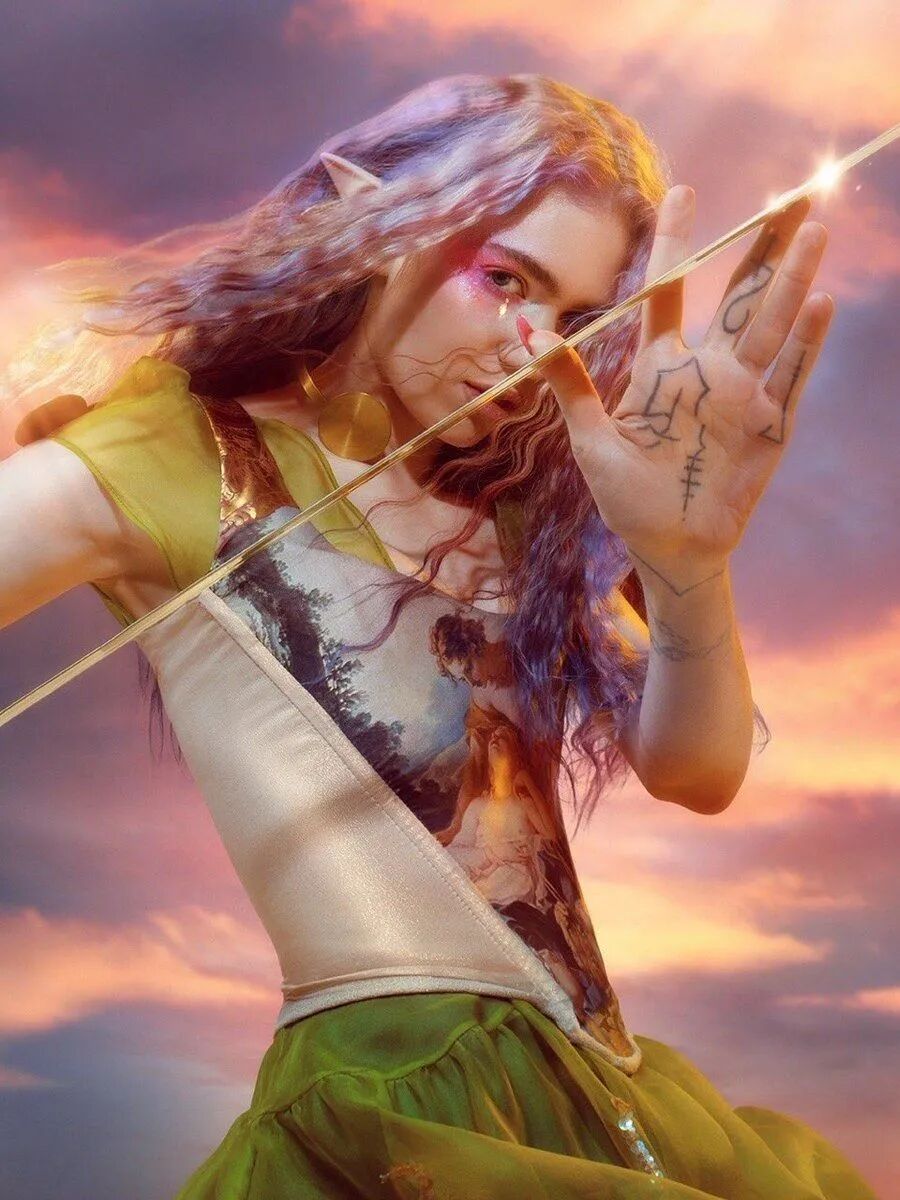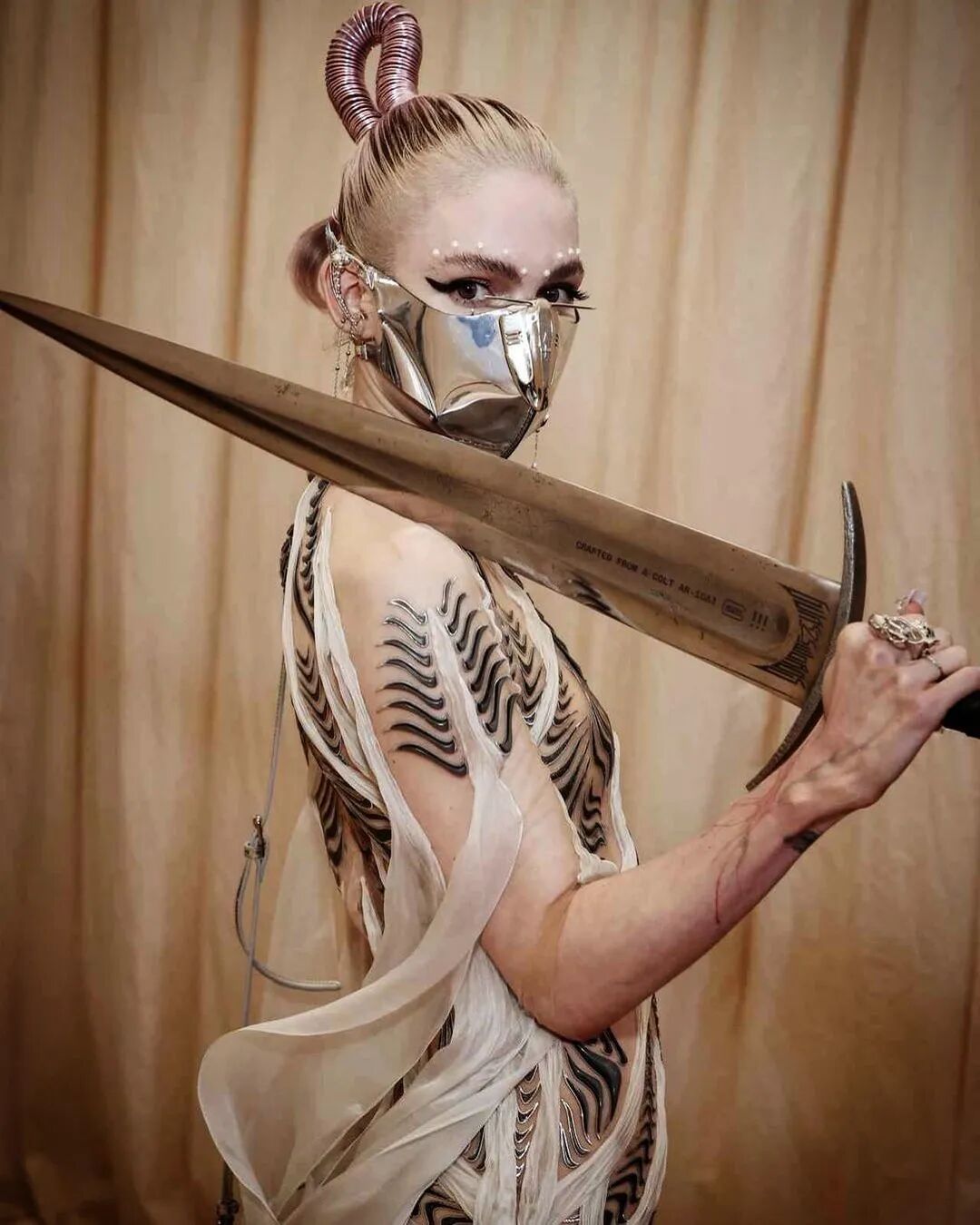 Grimes 的世界并不仅仅由音乐组成,而且是一个融合了音乐、视觉艺术和时尚的多面世界——她的文化参考范围从动漫到宝莱坞电影,从超级英雄到迪士尼奇幻系列,从美少女战士到权力的游戏,从中世纪战士到人工智能。