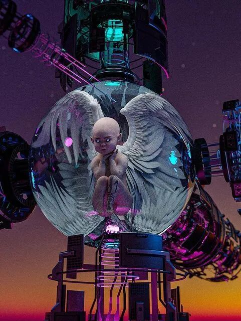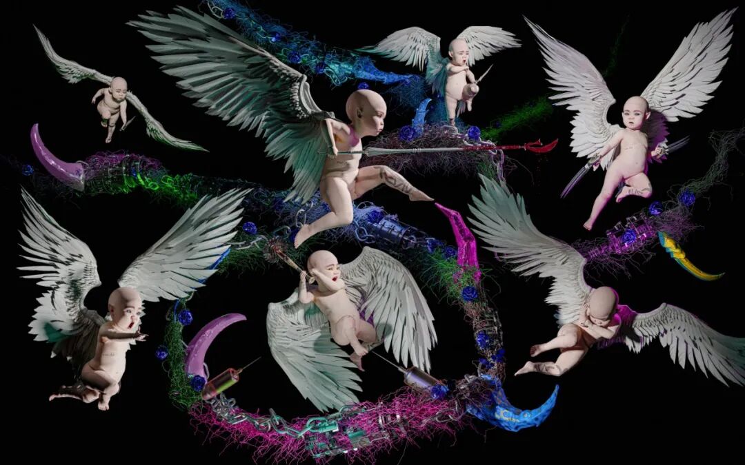 摄影、测量、扫描原始图像,雕刻、建模并变形为各种形式,然后被永久密封在小天使的身体中,她存在于虚拟世界的临界状态。