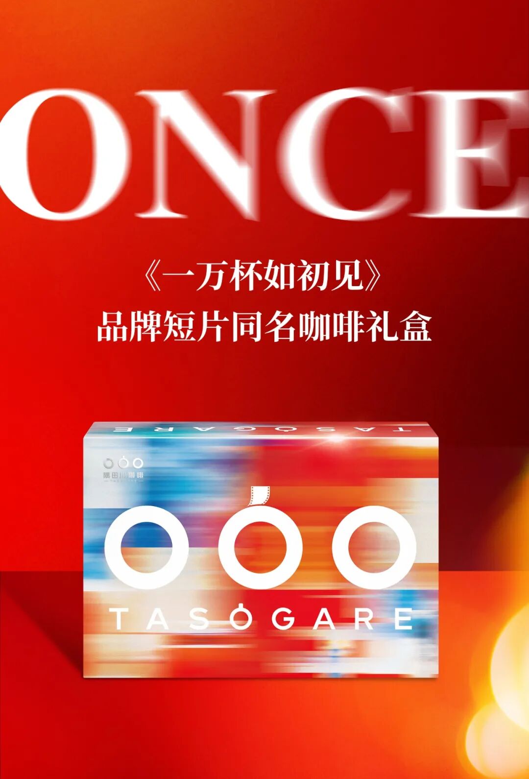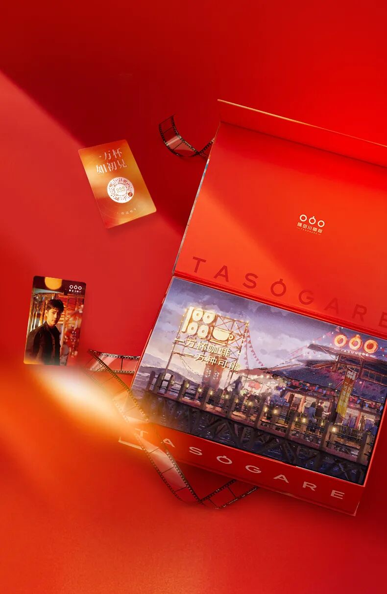 《一万杯如初见》同名礼盒,设计上将品牌的logo局部形变为胶卷造型,以最简单直观的形式放大品牌拍摄短片的这一事件。