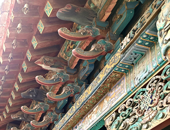 平身科斗栱上的木雕彩绘十二生肖蚂蚱头