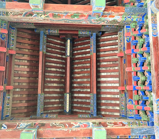 香阜宫的内部,最大特色是采用了“悬梁吊柱”与减柱造相结合的建筑结构。