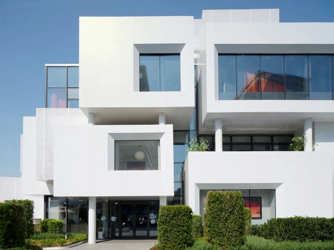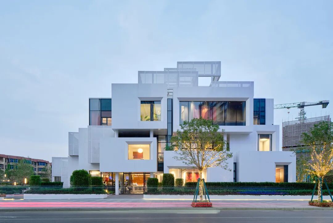 我们重新分析了万科销售中心的功能需求以及流线组织并给了一个新的分类方法。我们把交通和公共交流空间合并定义为一个流动的贯穿三层的喧闹的大空间。而影音厅、沙盘区、办公、样板房、茶室、咖啡、会议、洽谈、签约、VIP接待,室内花园等房间作为安静的小空间独立成盒子形体并按照流线依次plug在大空间上。你可以在外立面上看这些层层堆叠的盒子,并在盒子的空隙中看到那个流动的喧闹的主体大空间的一部分。