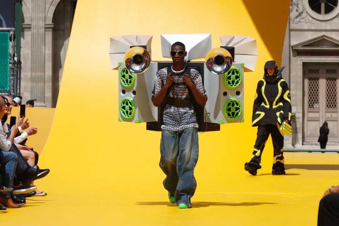 此次将秀场设计成为充满童趣的“炫彩游乐园”,模特们身着 2023 春季系列依次登场。