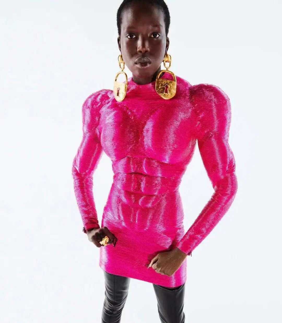 在欧美圈叱咤风云的金·卡戴珊也穿上了Schiaparelli的“金刚芭比”服。