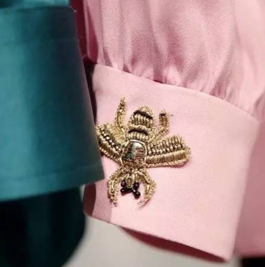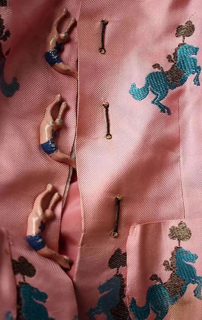 为了方便生产,这件衣服使用了一种称为trapunto(提花垫纬凸纹布)的特殊绗缝技术。骷髅的形象也是在为对遭受饥荒的受害者发声。