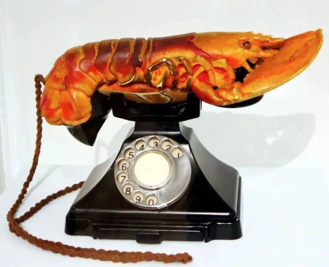 1935年,达利设计了一个带有假龙虾的真电话(据说灵感来源是他偶然看到有人把吃剩的龙虾壳随手丢在电话上)。