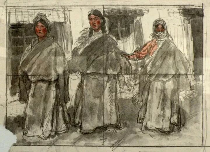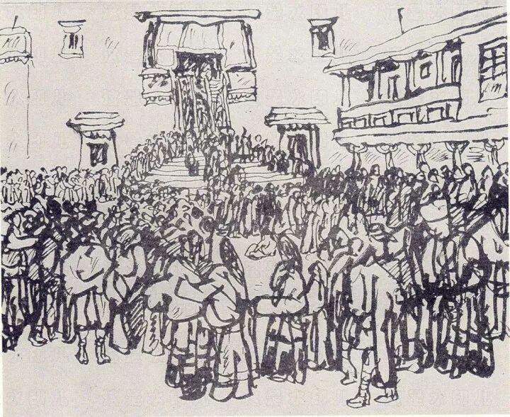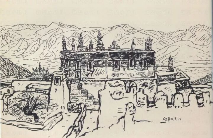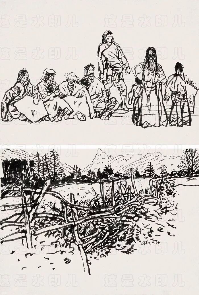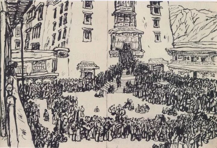 30年前,陈丹青两次进西藏,第一次是1976年画出了《泪水洒满丰收田》,第二次是1980年创作《西藏组画》。后一次进藏速写数量惊人,题材也几乎包罗了当时西藏景物和社会生活的直观全貌,大到雪山神湖,小到藏刀毡帽上的图案记录。可以猜想短短的3个月里,年轻的陈丹青是怎样的好奇、惊喜和兴奋,又是怎样的敏锐、冲动和热情。