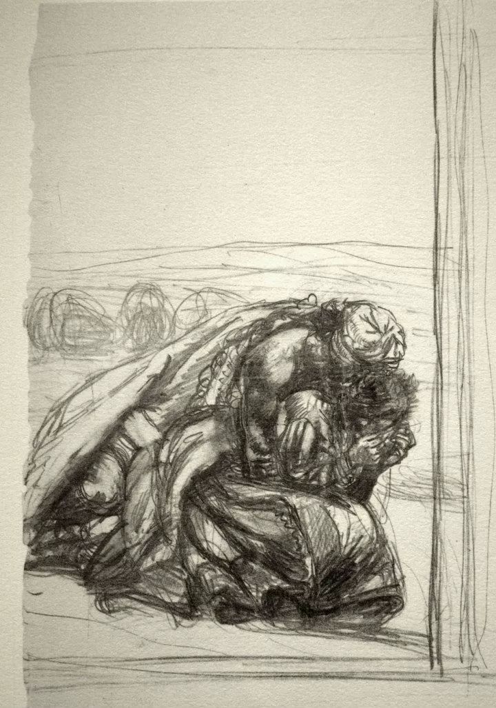 拙于文字的我很难准确描述这批速写的精妙,每次看到就心跳加速。面对好作品评价赞美都是多余的,先傻在那里,享受那一刻被电击般的纯粹,我只能感知我的激动。记得去年在中央美院展厅里看“素描教学60年”,我在看整个展览的过程中都还理智平静,也许,因为我对西藏感情特殊,唯到陈丹青西藏速写这里心脏猛烈跳动,他的直接、热忱扑面而来,高超画技隐于情感后面,画家和笔下的形象都是活着的生命,康巴汉子自不必说,连小泥房子都像是在“呼吸”。
