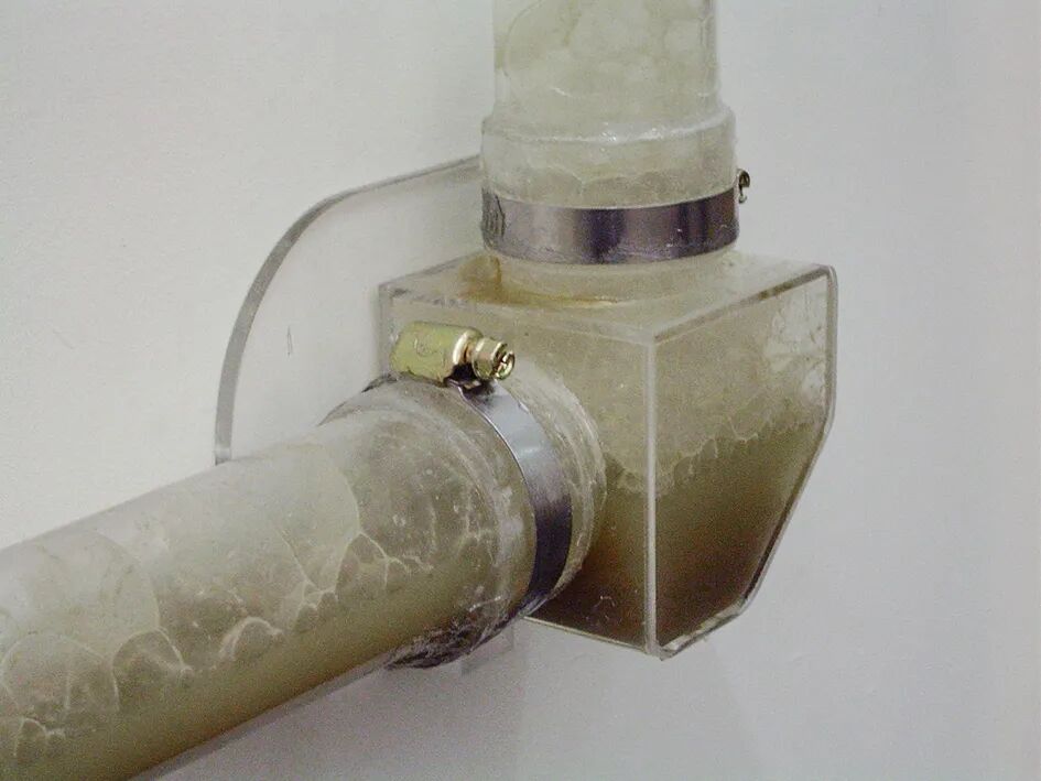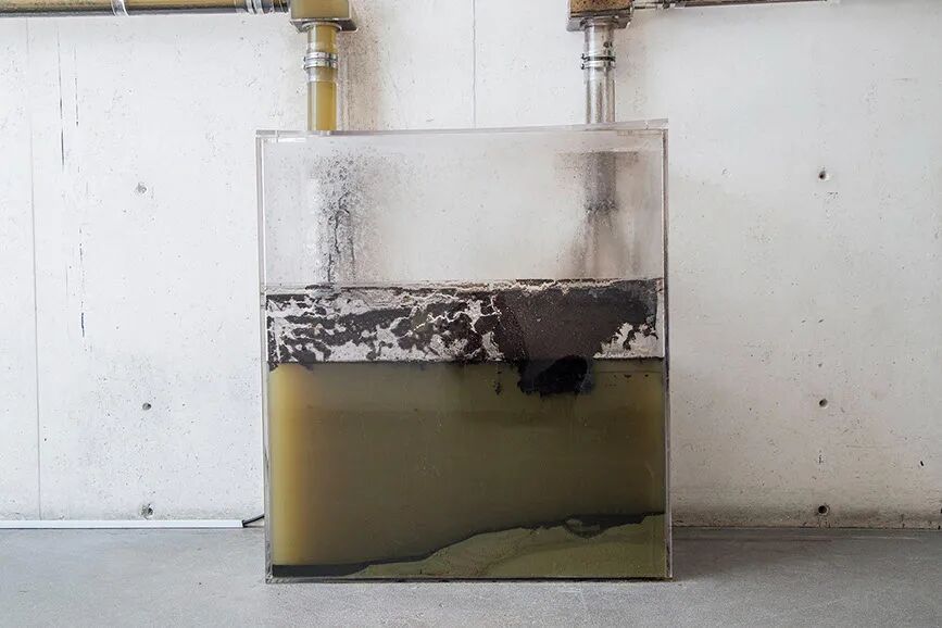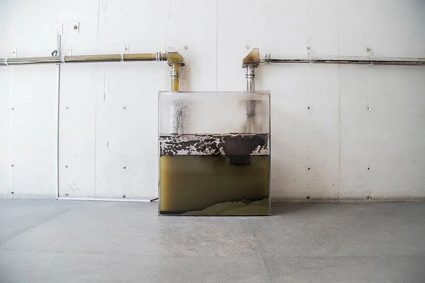 HCl,是盐酸的配方,这种酸有助于人体消化。这件作品由一系列穿过画廊空间的透明亚克力管道组成,呕吐物(由匿名暴食症患者捐赠)通过这些管道不断循环。
