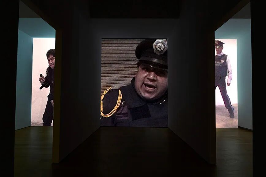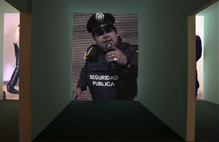 乳胶是一个 2 频道视频装置,奥孔与来自墨西哥城的一个业余恐怖剧团合作。受到导致 2012 年墨西哥总统选举的恐惧运动的启发,该作品聚焦于将暴力作为一种政治工具的壮观化。视频装置源于一场表演,奥孔使用戏剧作为诱饵,以渗透到公众中一群长相令人生畏的男人。接近尾声时,这两场表演共同揭示了渗透者的身份,并让公众回想他们的反应。