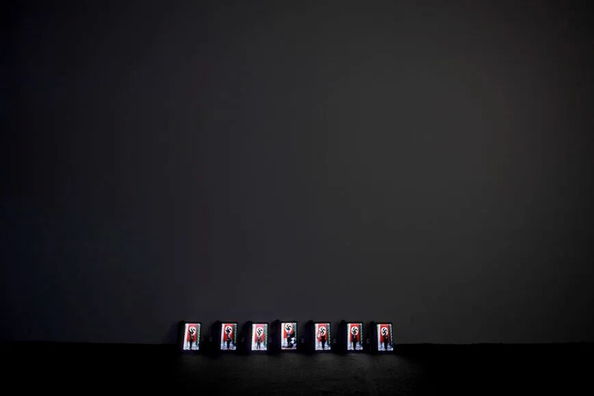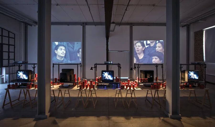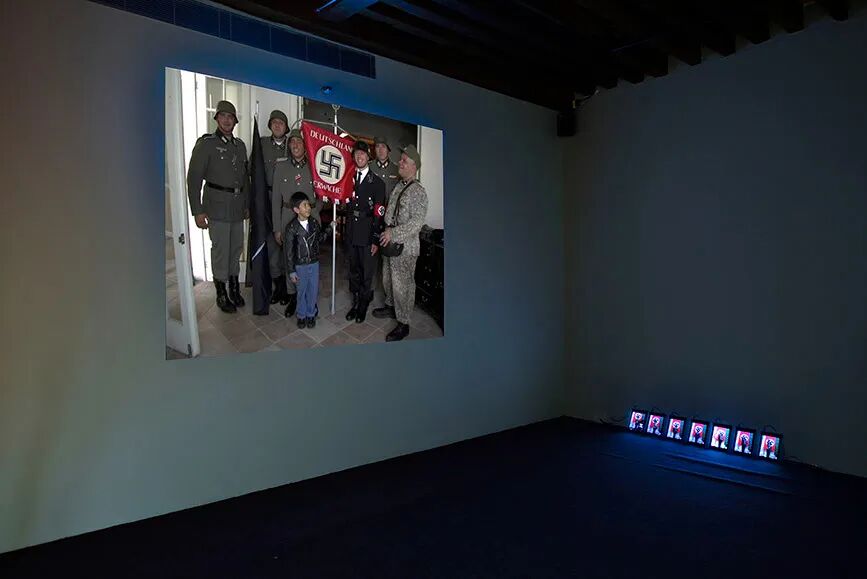 一个充满房间的多频道视频装置,分为四个部分。为此,艺术家与一群第三帝国的粉丝合作,他们是真正的法西斯主义者、二战历史爱好者、恋物癖者和周末爱好者的奇怪混合体。标题指的是墨西哥城的一条街道,他们每周都会在那里举行会议,并且巧合地以墨西哥国歌的作者命名。Okón 赢得了他们的信任,他们同意在一系列精心策划的情况下进行合作,这些情况被记录在视频中。