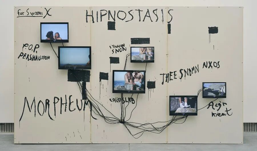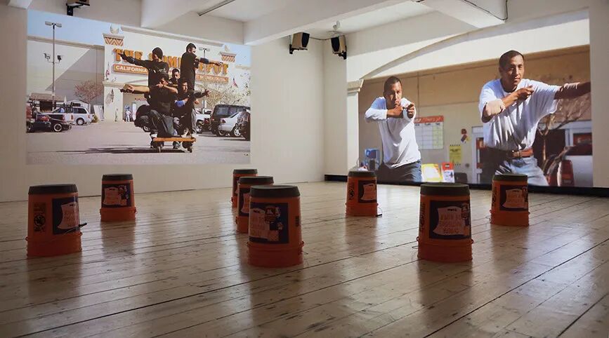 这件作品的灵感来自艺术家和 Pettibon 一起拜访的前世治疗师,他告诉其中一个人,他前世是一名嬉皮邪教领袖,死于集体自杀。这激发了他们寻找这一特定人群并开始与他们合作。多频道视频装置探索了威尼斯海滩的旧嬉皮士和海滩流浪汉的亚文化。这些视频讲述了 30 多年来一直在海滩上生活的男人忠于他们的非物质主义意识形态,形成了一个紧密结合的另类社区,尽管它与主流现实缺乏联系,但却以自己的方式繁荣和生存。