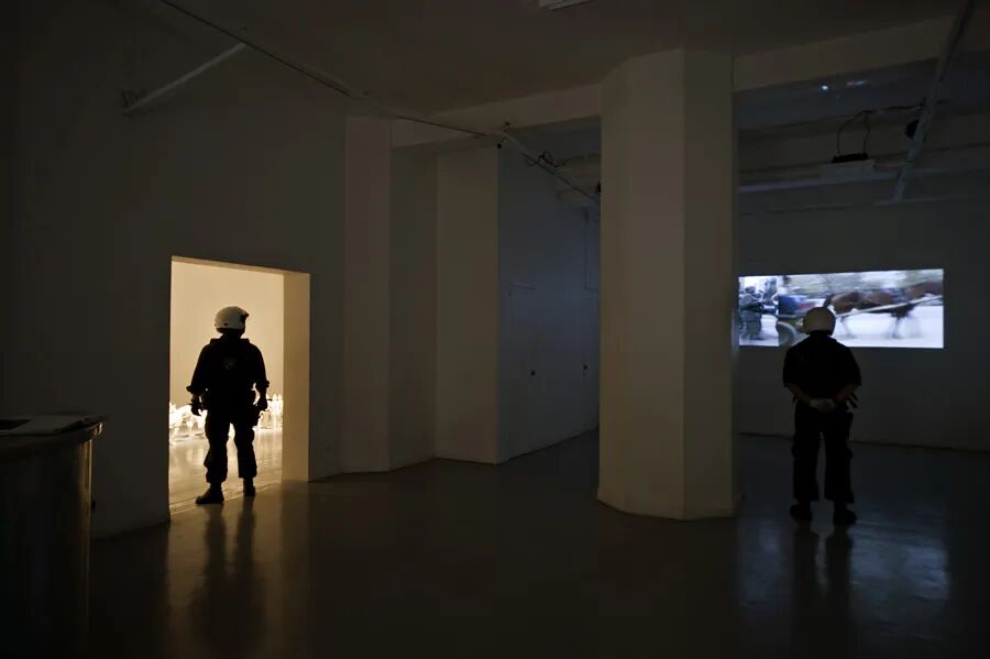 艺术家考察了美国斗牛犬的文化意义和历史,这是一种专门为战斗而生的狗。召集了一组十只公狗,精心策划了一场高度仪式化和同步的表演。故意的矫揉造作与对现实的特殊坚持融合在一起,导致精心设计的内容与突然爆发的不受控制的侵略之间存在强大的紧张关系。该作品探讨了人类与动物的共存以及暴力的概念。它还在我们普遍幻想控制自然的背景下探索异化。