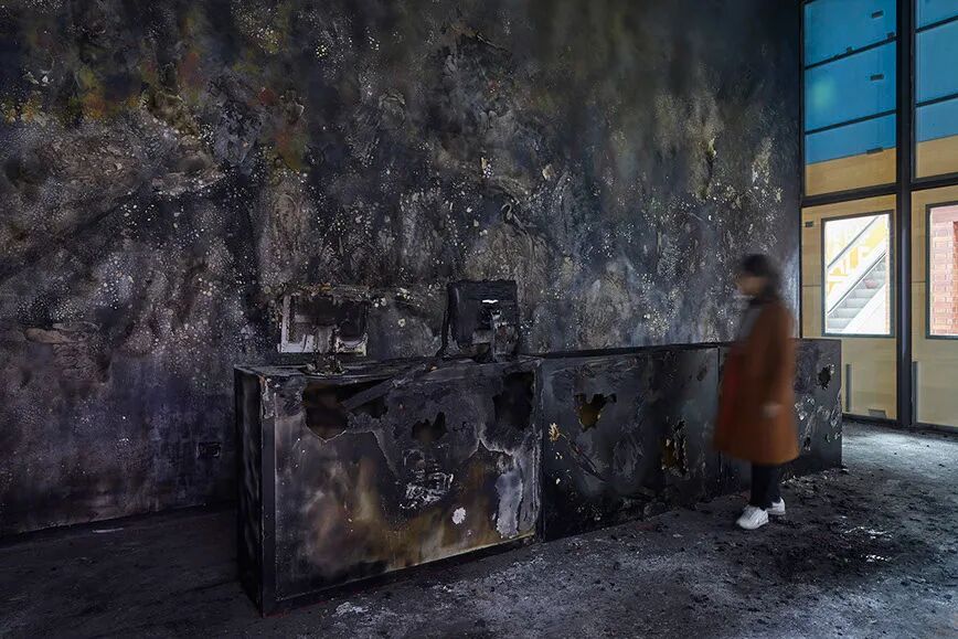 艺术的雕塑暗示了成语“房间里的大象”,暗示了人类对环境影响的深刻否认。以人类世为特征,今天人类对生态系统造成的灾难性影响在艺术家的作品中表现为一个自我中心的文明,无法自我批评,淹没在消费的深渊中,悲惨地走向崩溃。