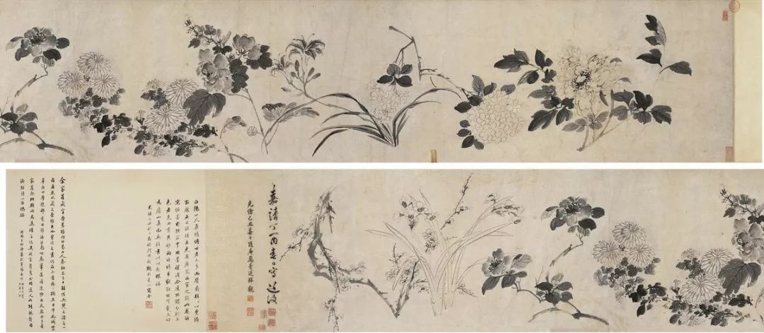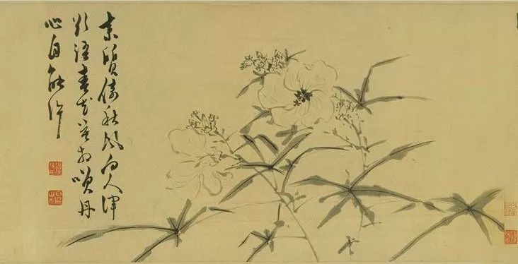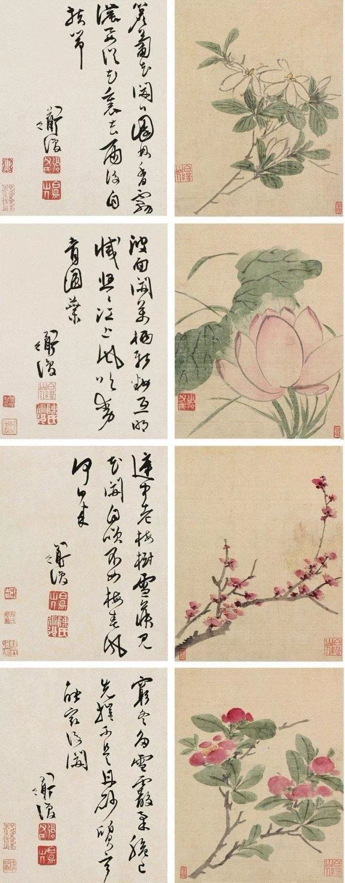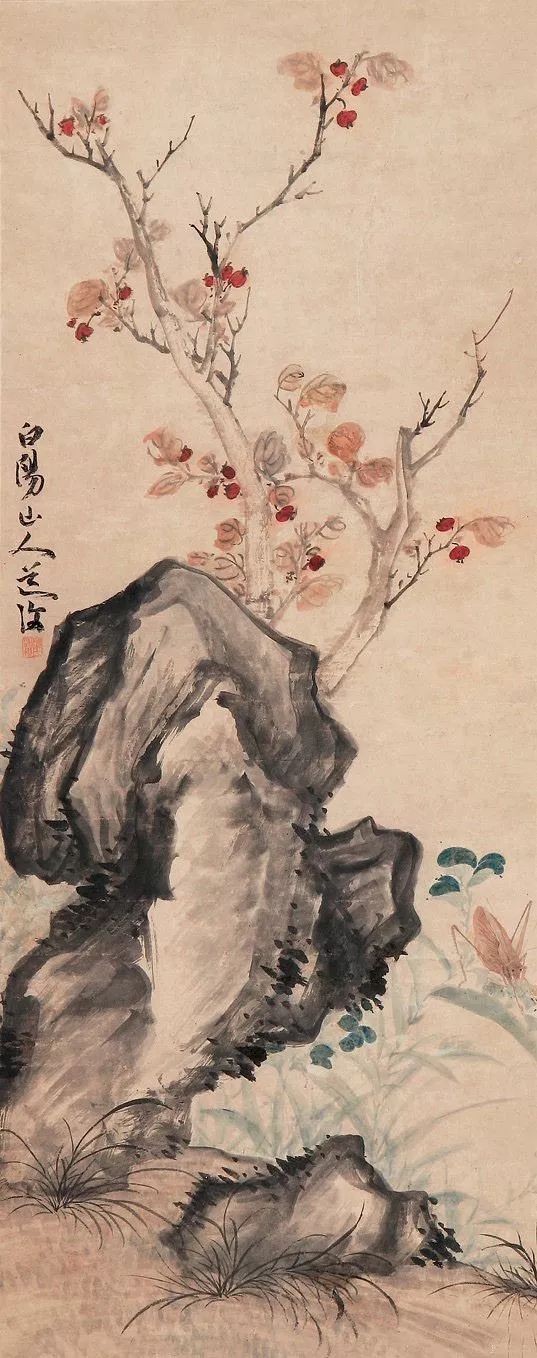 他的淡彩作品,水墨八九分,而色彩只有一二分,且是单层罩上。多是一花半叶,淡墨欹毫,以剪裁取胜,尤其是长卷和册页中的物象,虽是一枝半叶,画意却没有“残缺”的感觉,反而是“一花一世界”。