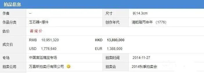 一件乾隆期间的玉器以1095万的高价成交,这类器物相信如今已极少有人了解。它是什么东西,又有什么用,能以过千万的价格落锤呢?