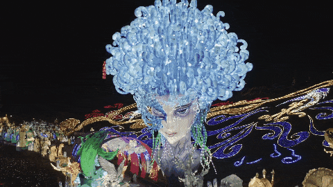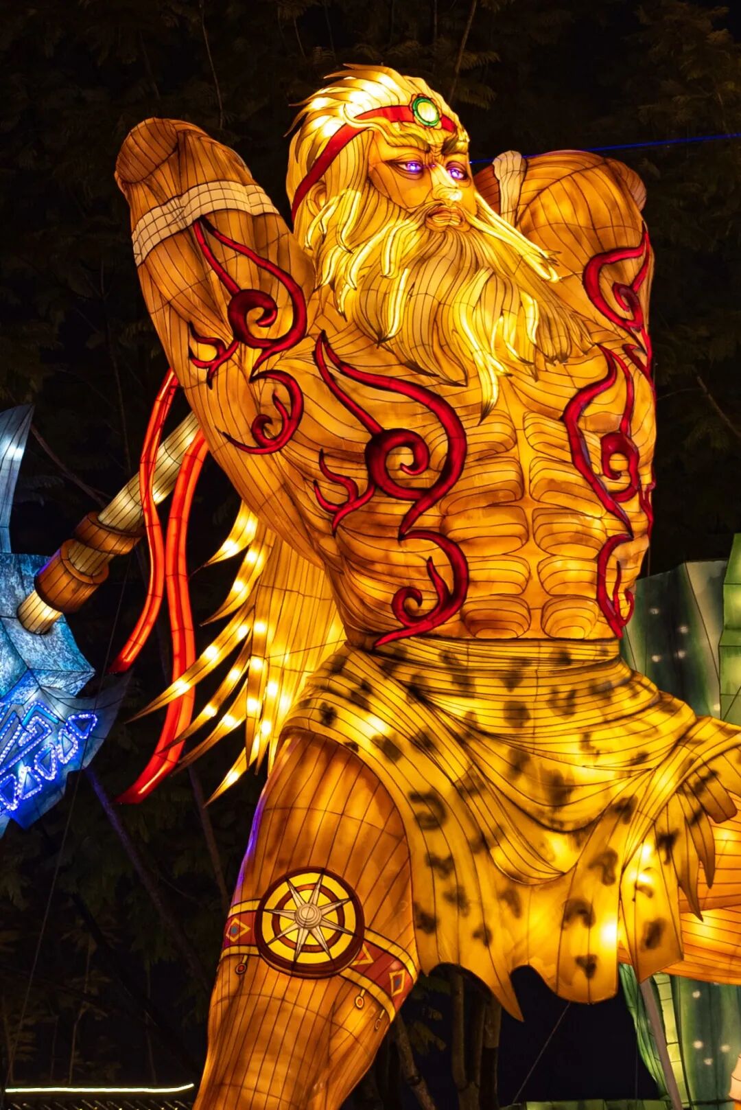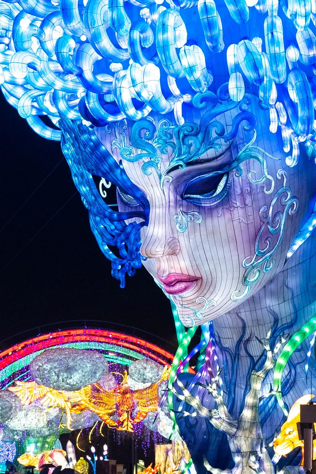于是整整大半年的时间,超过60家灯企联手,1000多个工人不分昼夜地鏖战,终于打造出了精卫女神等灯组。女神的一根发丝,需要2-3个成年男子才能抬得动。