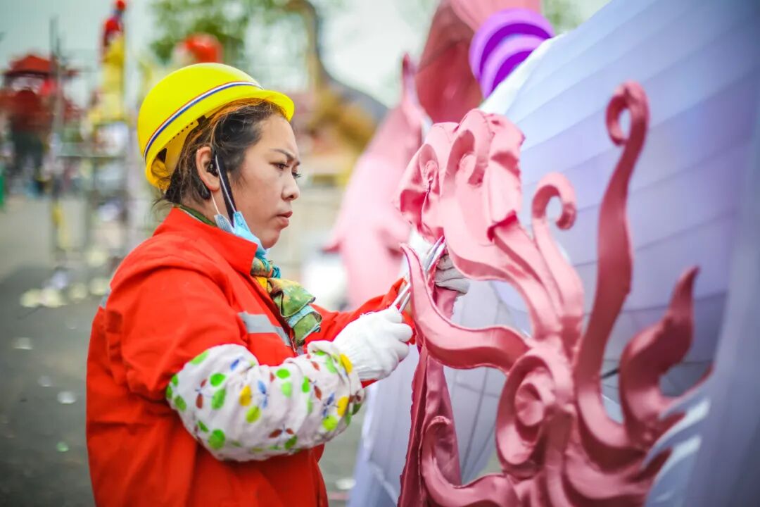 厂里的工人群策群力,大开脑洞。“比如要设计一个仙子从荷花里升起来的灯,边旋转边喷雾,大家就会一起讨论,究竟是用怎样的造型,怎么用电机、液压、液氮喷雾来实现。”从事彩灯行业研究30年的周宪这样回忆。