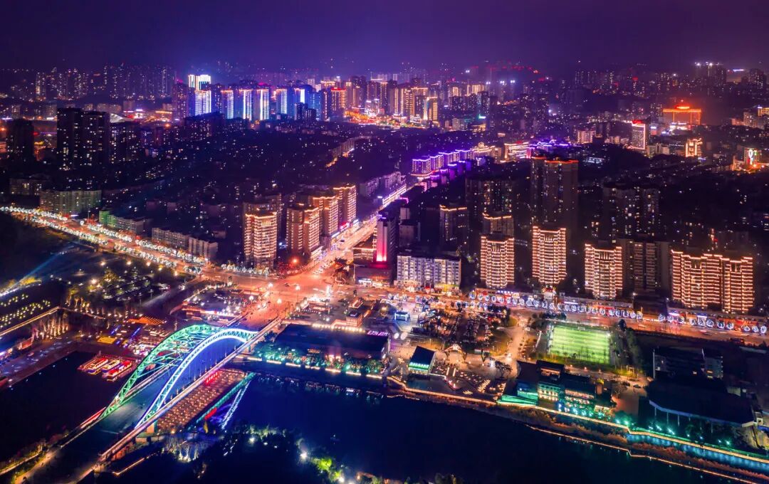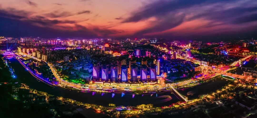 街道上陈列着许多巨型的恐龙雕塑,树上成片成片悬挂着各式五彩小灯,随处可见的兔肉餐馆,为这个川城添了几分神秘和野性。
