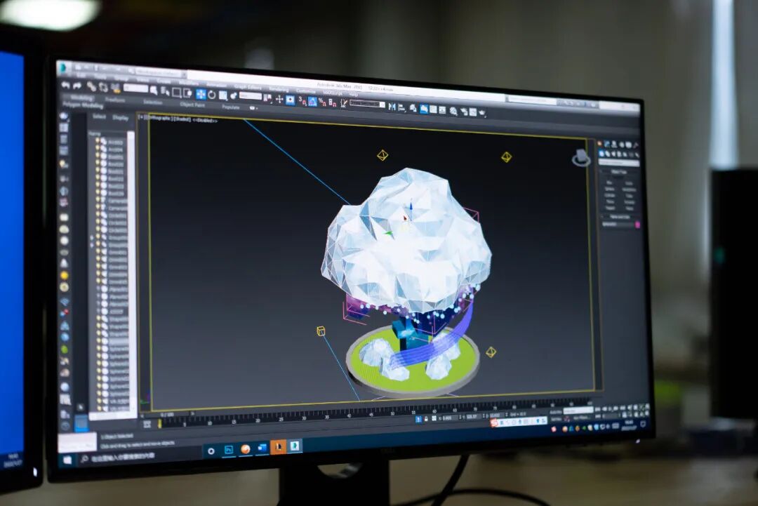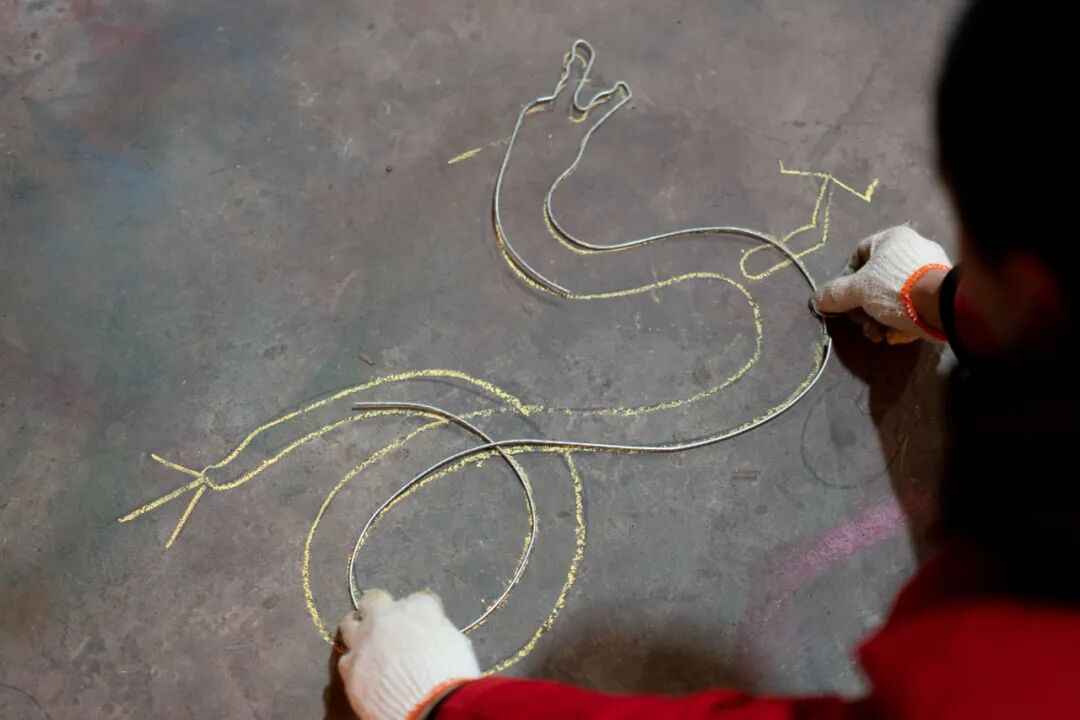 从前,在电脑还未普及时美术师进行灯组设计和施工放样大多靠手绘,一个20米的灯,就在地上按1:1比例画出来了。现在多用电脑绘制3D图,将灯组分解成各个部分,小块小块地喷绘。