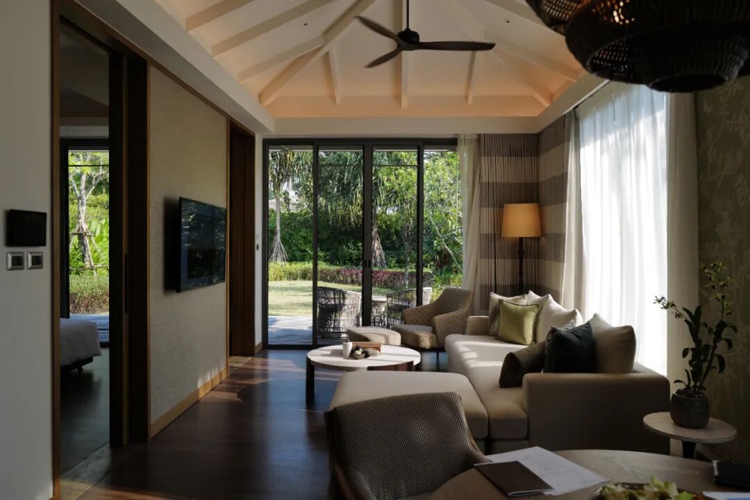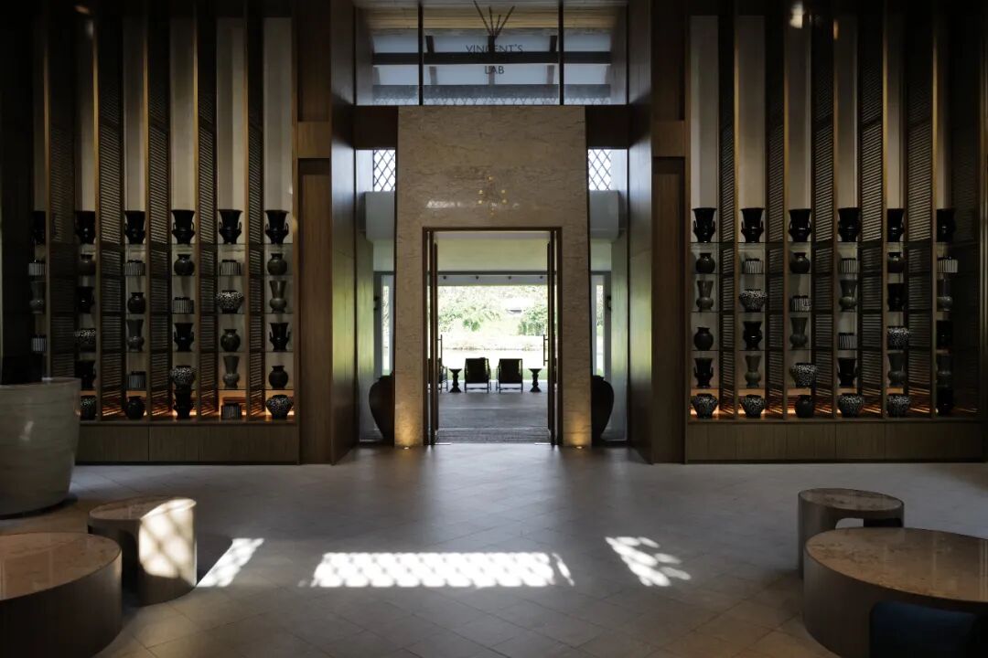 RAKxa的到达体验,是一系列关于“放下”的仪式,车在落客区停稳后,先要跨进一座面湖而居的到达亭,这里布置着迷人的客厅家具和修剪精美的绿植,还有整桌的颂钵。
