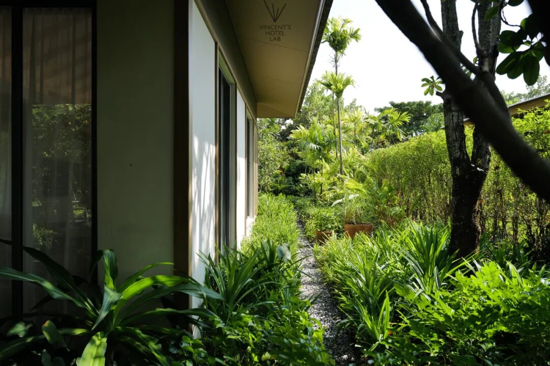 每间别墅还有自带的花园(部分房型还自带泳池),并在别墅入户庭院配备自行车停放点,方便探索绿洲和体验各项课程时代步,很妙的是,连收放自行车的卡轮槽都是花圃构成的。