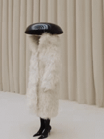 当它们再配上帽子大师Philip Treacy打造的灯罩一般的圆顶帽时,放佛穿越到了未来。这是Demna Gvasalia的主意,他想要漆质如跑车车壳一样透亮。而Philip Treacy真的,已经,划水很多年了。上一次让他用心设计的人,是Alexander McQueen。