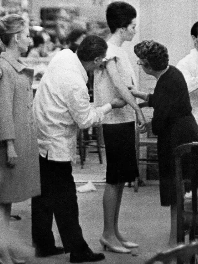 时装记者Diana Vreeland在回忆录里记载,有客人得知他要关店,literally直接昏倒在他的沙龙里。还有传言他的客户Mona von Bismarck得知这一消息,悲痛得将自己关在房间里三天没出门。毕竟,她曾连在家种花时穿的围裙,都要从Balenciaga那里定制。
