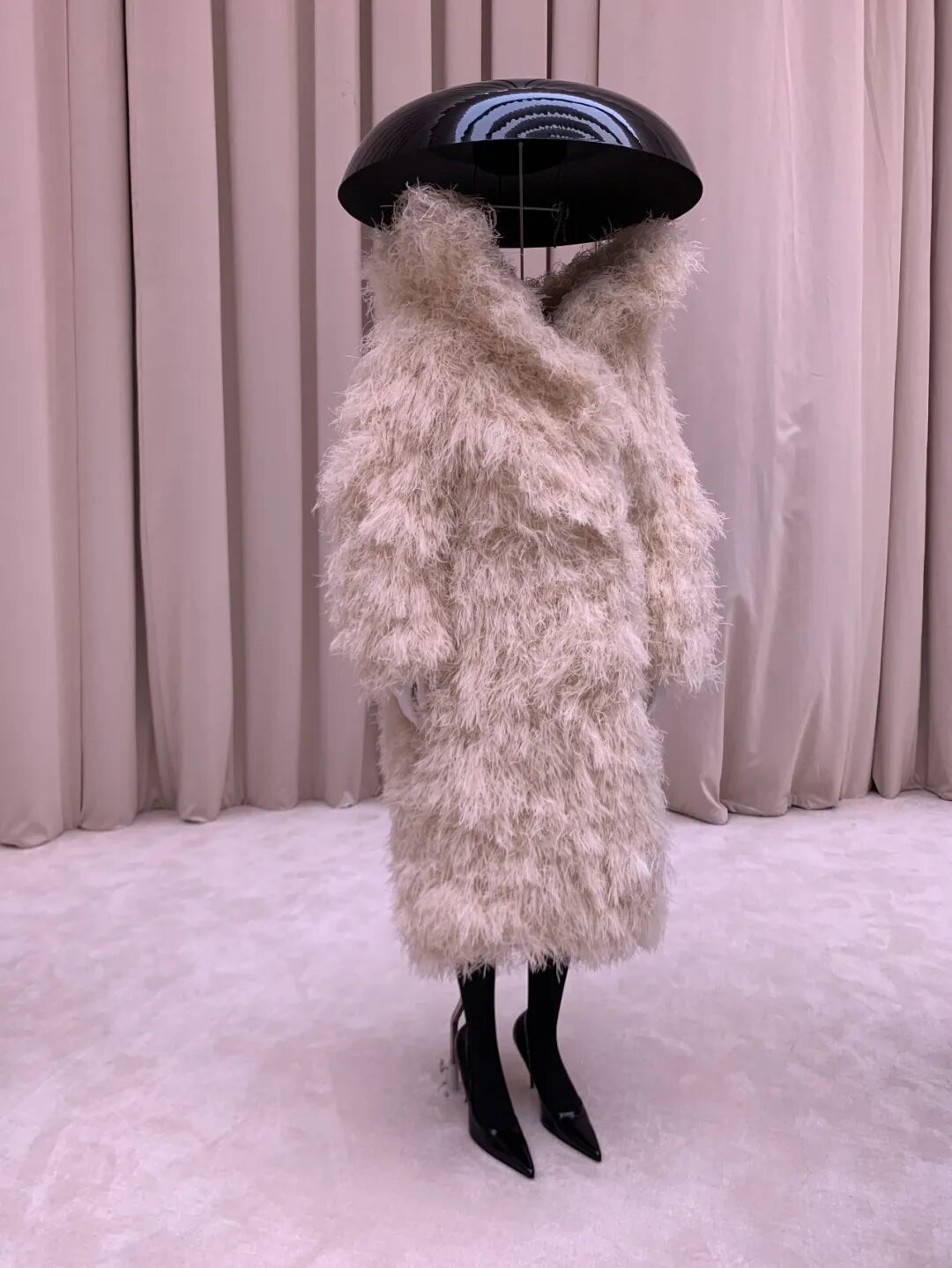 此次,还包含一件专为中国鉴赏活动特别定制的作品:米白色真丝外套——它其实是用欧根纱一点一点剪,剪成鸵鸟毛一样的外形。