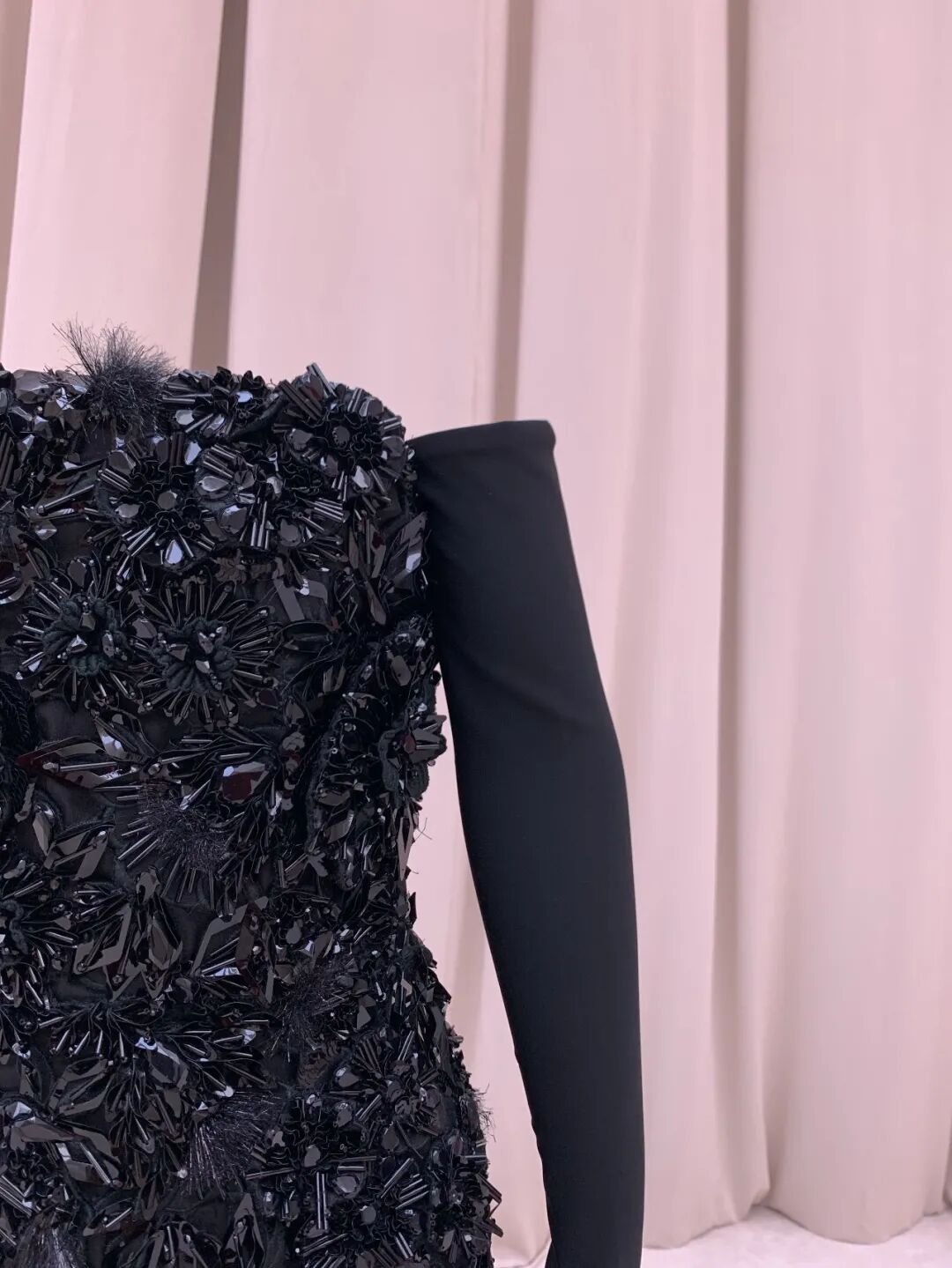 看上去是羽毛,其实是用一丝一丝的亮片配合珍珠和施华洛世奇水晶,刺绣成像羽毛的形状,让整件大衣服看上去是粉红的羽毛制成,但又有羽毛无法实现的闪亮。Lesage为V&A博物馆特别复刻了一小部分,来展示超高的技艺。