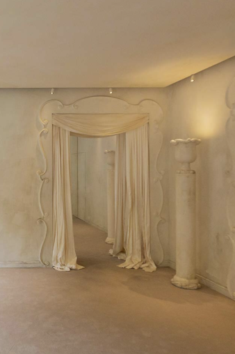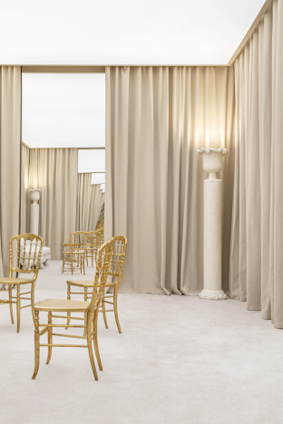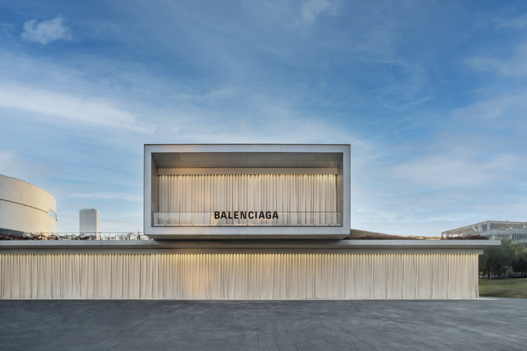 尽管只有极其短暂并不对外公开的展出,Balenciaga还是包下黄浦江边的油罐艺术中心——是真的用最早Balenciaga沙龙里同色系的窗帘在“包”,营造出沙龙式的隐秘。