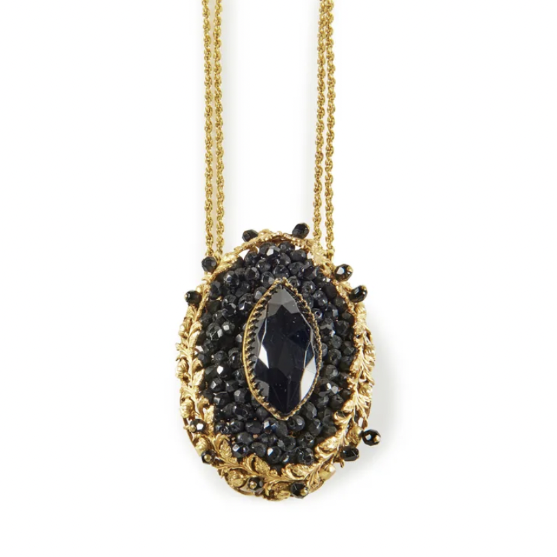 1950年的黄铜项链,饰有黑曜石和黑色琉璃,拍卖行预估成交价1千500至2千500欧元