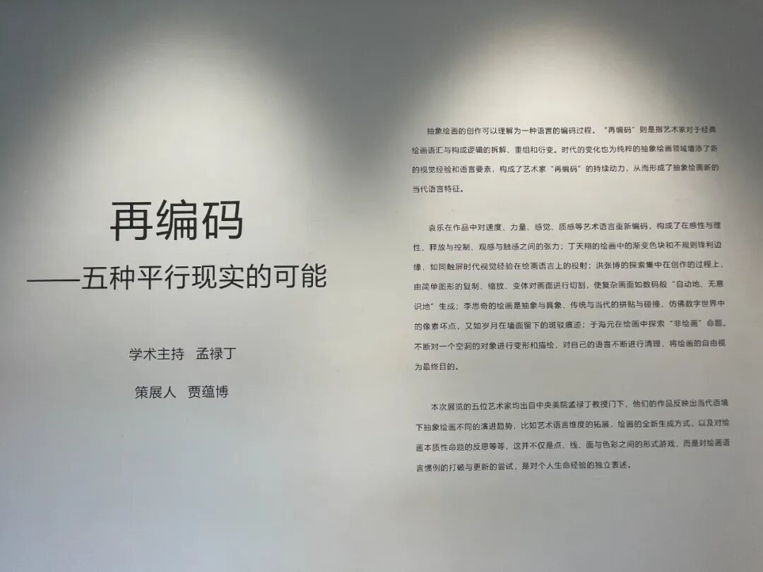 本次“再编码”的五位艺术家均出自中央美院孟禄丁教授门下,他们的作品反映出当代语境下抽象绘画不同的演进趋势,有人在艺术语言新的维度上不断推进,有人开始思考抽象绘画新的生成方式;有人则在反思绘画何以成为绘画的本质性命题……这并不仅是点、线、面与色彩之间的形式游戏,而是对根深蒂固的绘画语言惯例的努力打破与更新的尝试,是对个人生命经验的独立表述。