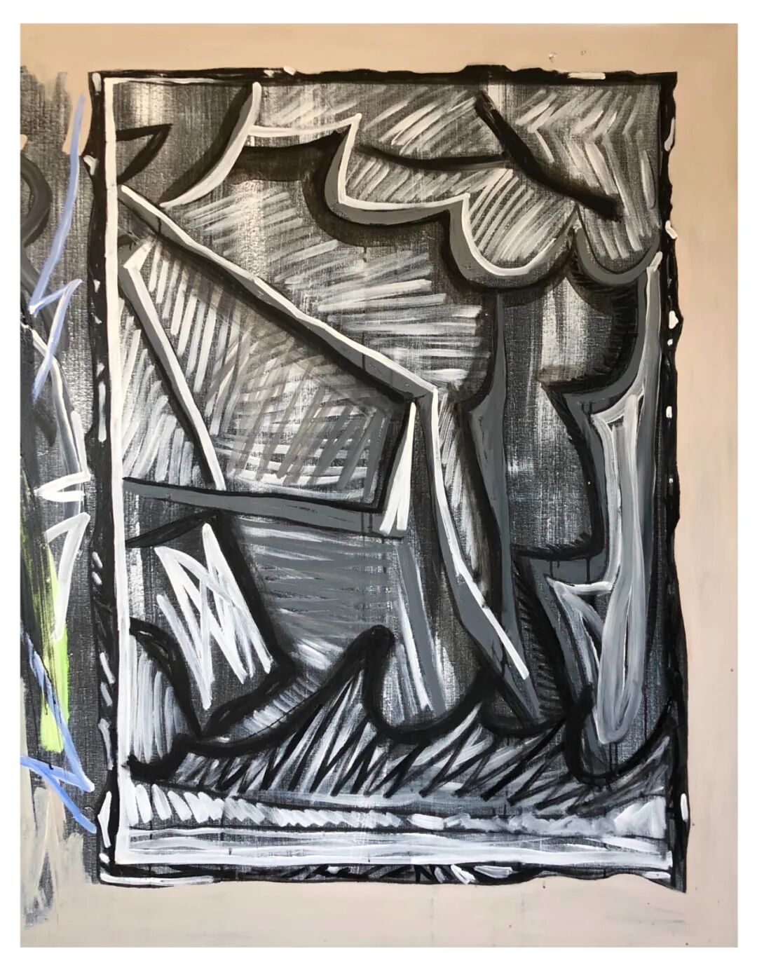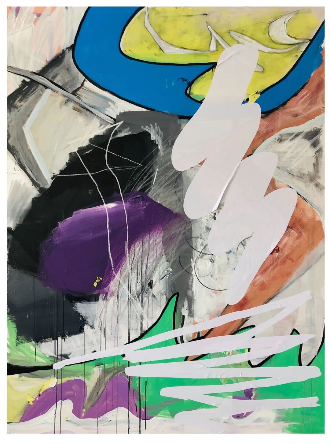 于海元在绘画中探索“非绘画”的命题,在创作中进行艺术实践与理论的双重建构。在于海元看来,绘画语言是绘画的核心。而于海元探索的是抽象艺术在现代主义之后的一种新的尝试——他不再表现对象,也不再探索形式,甚至不进行图像的生产,他从街头巷尾随机捕捉墙上的涂鸦,作为其探索的媒介,不断对一个空洞的对象进行变形和描绘,对自己的语言不断进行清理。在他看来,“非绘画”不是对于抽象绘画这一现代主义概念的对抗,而是对绘画自由的思考。在思考自身的表达与提炼绘画语言的过程中,他将绘画的自由视为最终目的——当绘画不再被任何一种对象、形式甚至语言所描述时,才可能达到真正的“自由表达”。