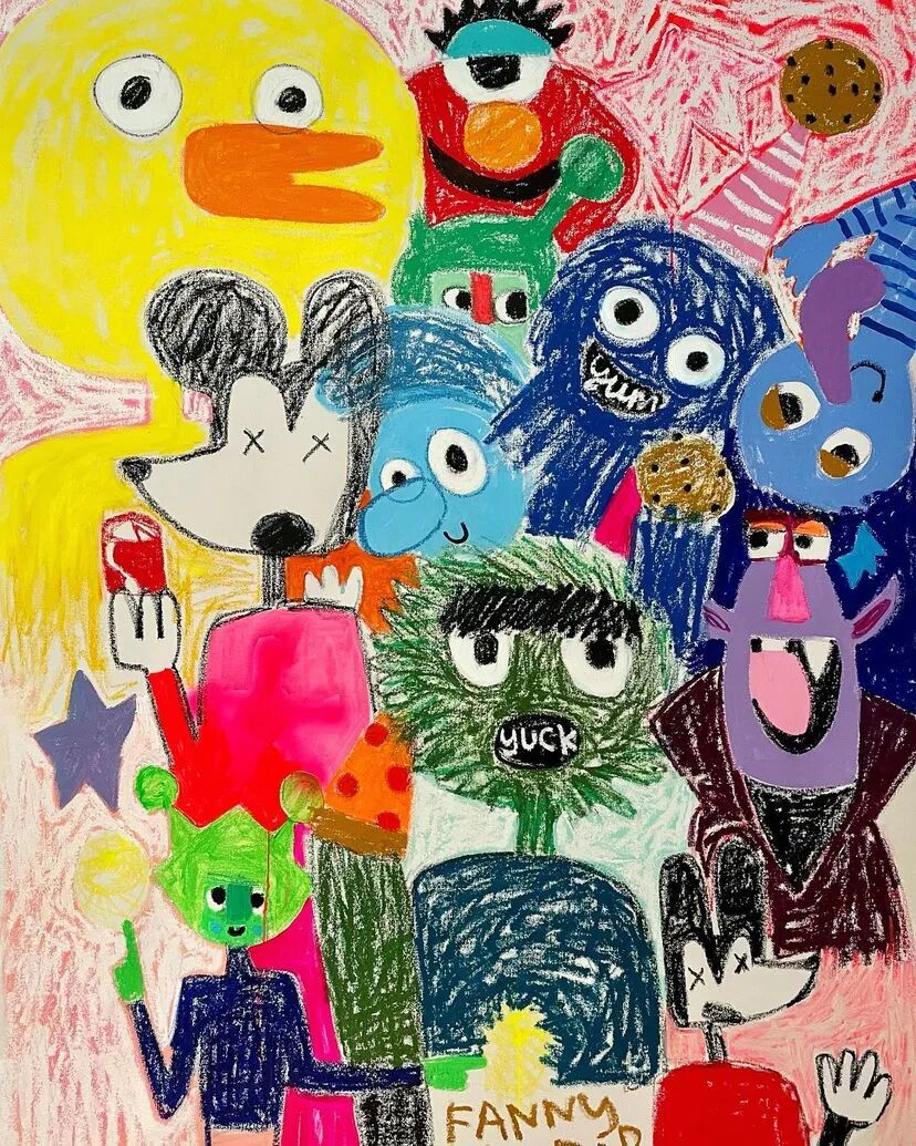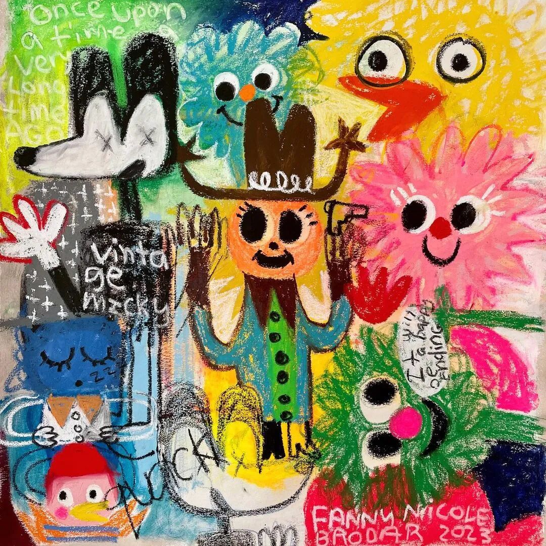 Fanny Brodar用鲜艳的色彩、孩子般的标记和潦草的文字邀请观众更深入地探究他们自己的怀旧之情,同时质疑什么是真实的,什么是虚构的,从而唤醒内心那份纯真和快乐。