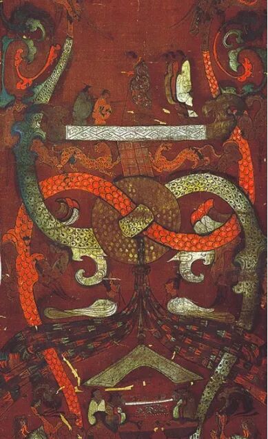 上方为飞升的辛追夫人,下方为家人们。© 湖南博物院