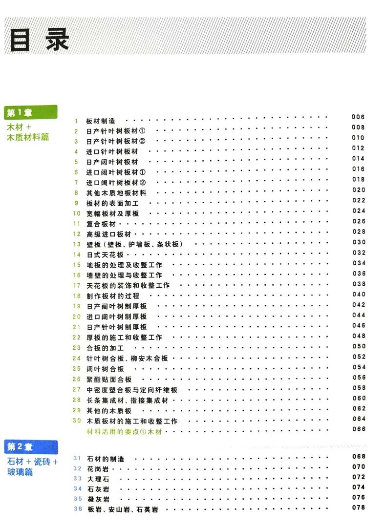 第1册:将建筑材料分为木材、石材砖材玻璃、灰泥涂料和其他板材四大类,并结合实际案例,通过对材料的特性、制造方法、加工应用与施工维护等的解析,为读者提供材料选择的依据和参考。
