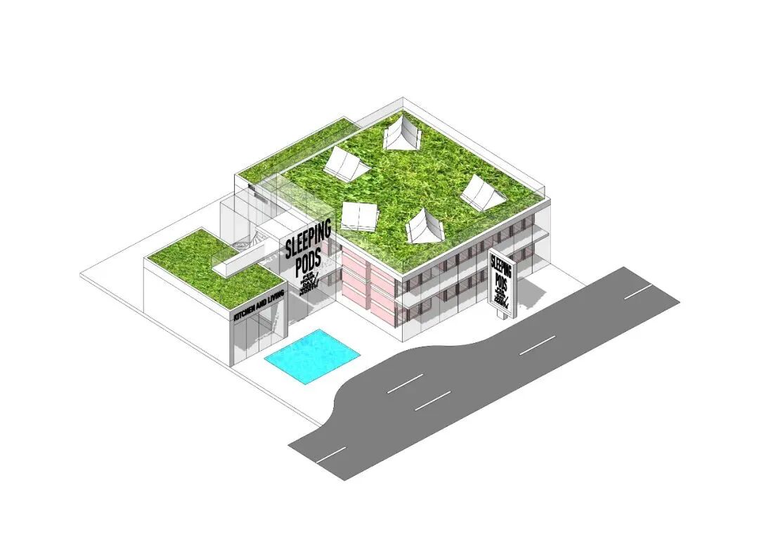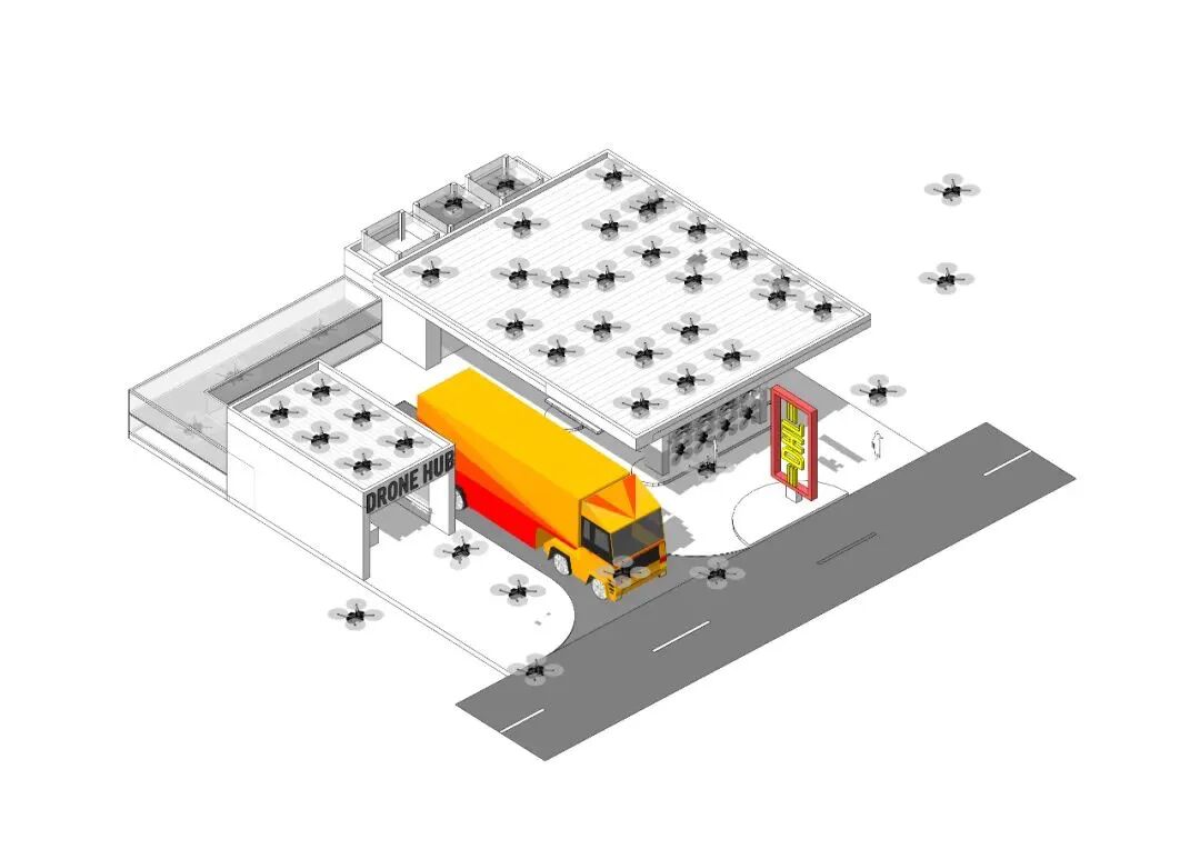 加油站目前使用的小规模用地可以在不久的将来容纳新的建筑类型,提供与当地社区互动的各种活动和项目,并为不断增长的电动汽车提供充电服务。