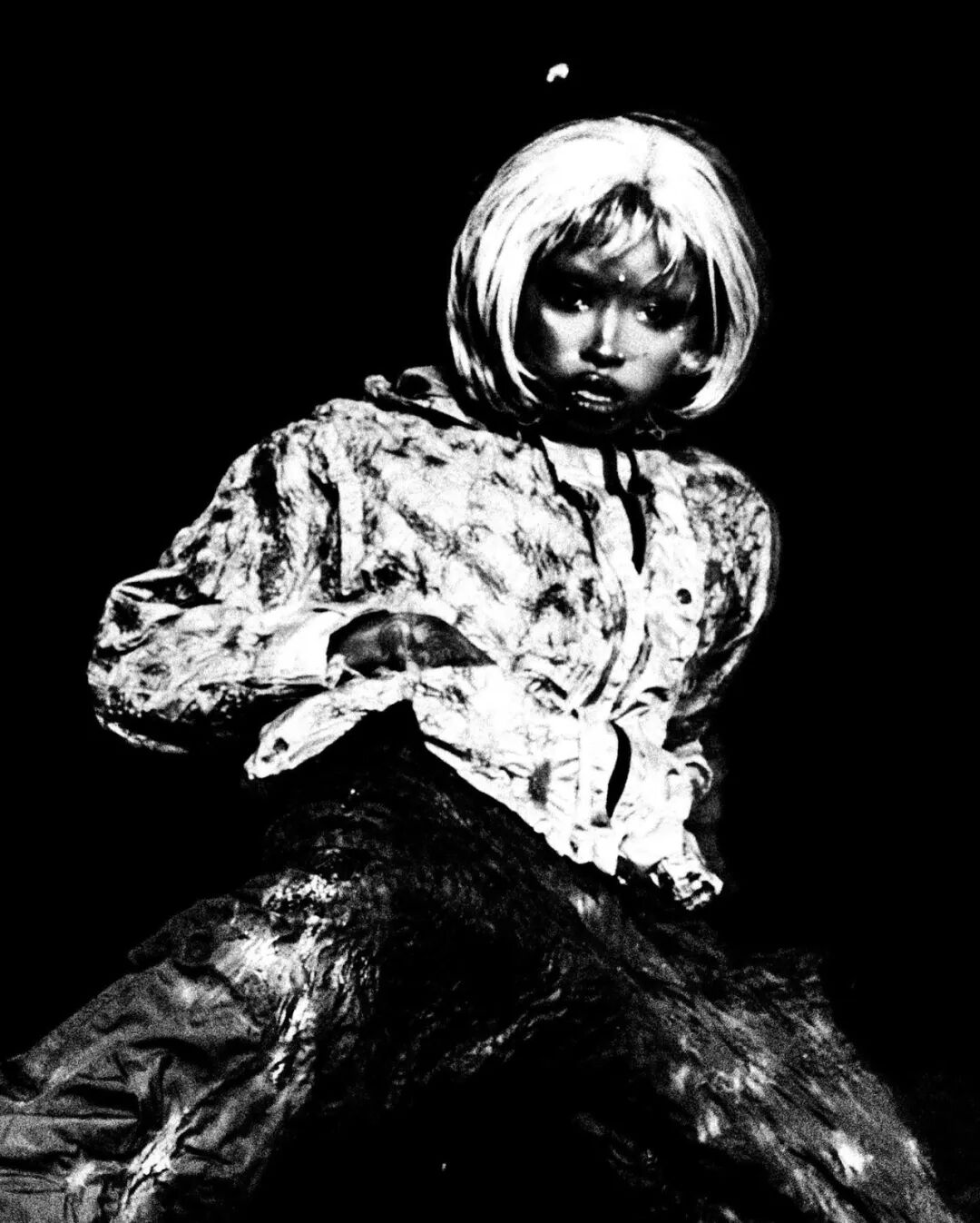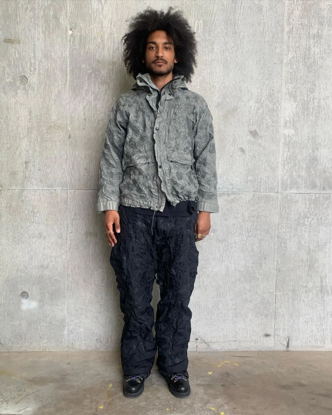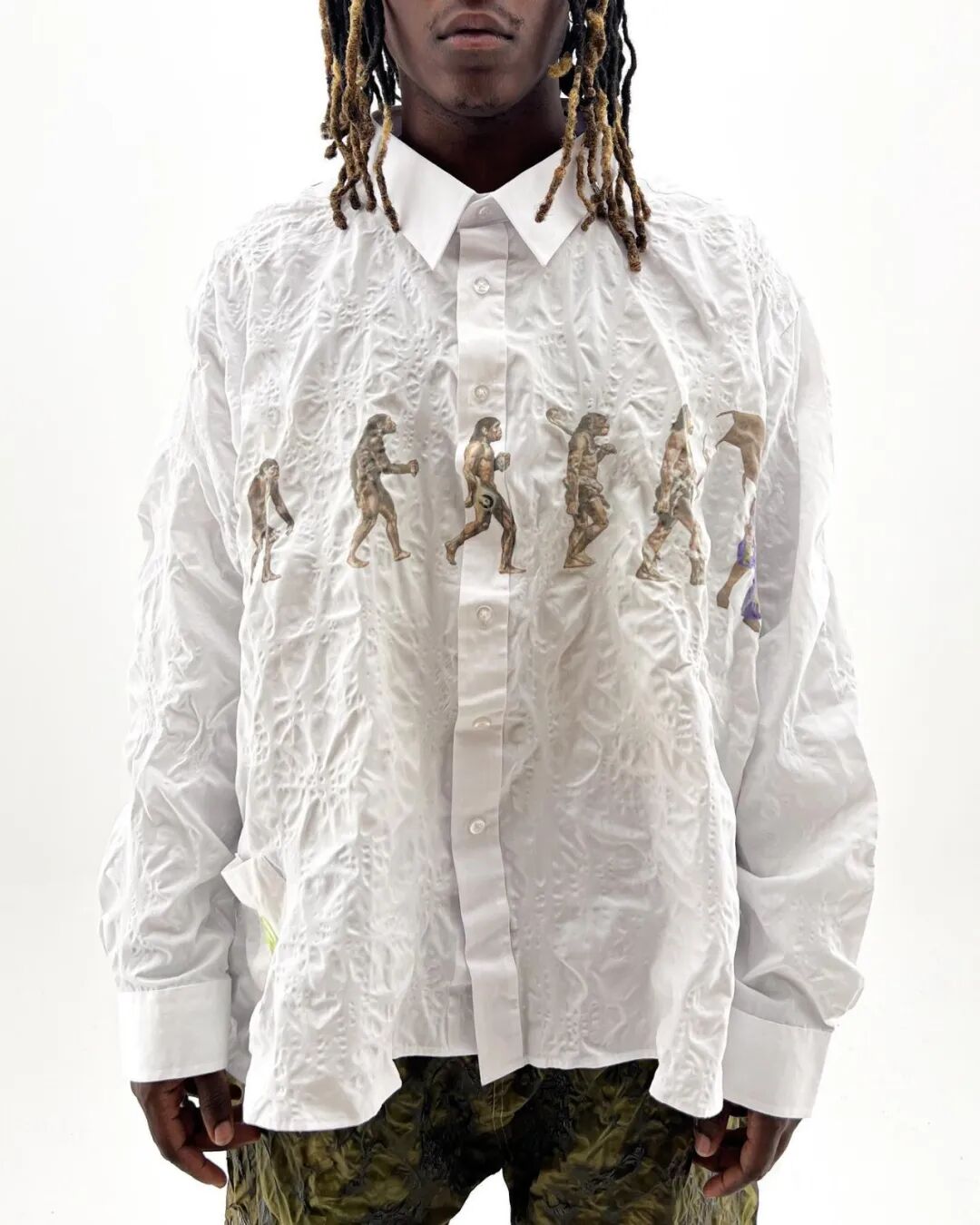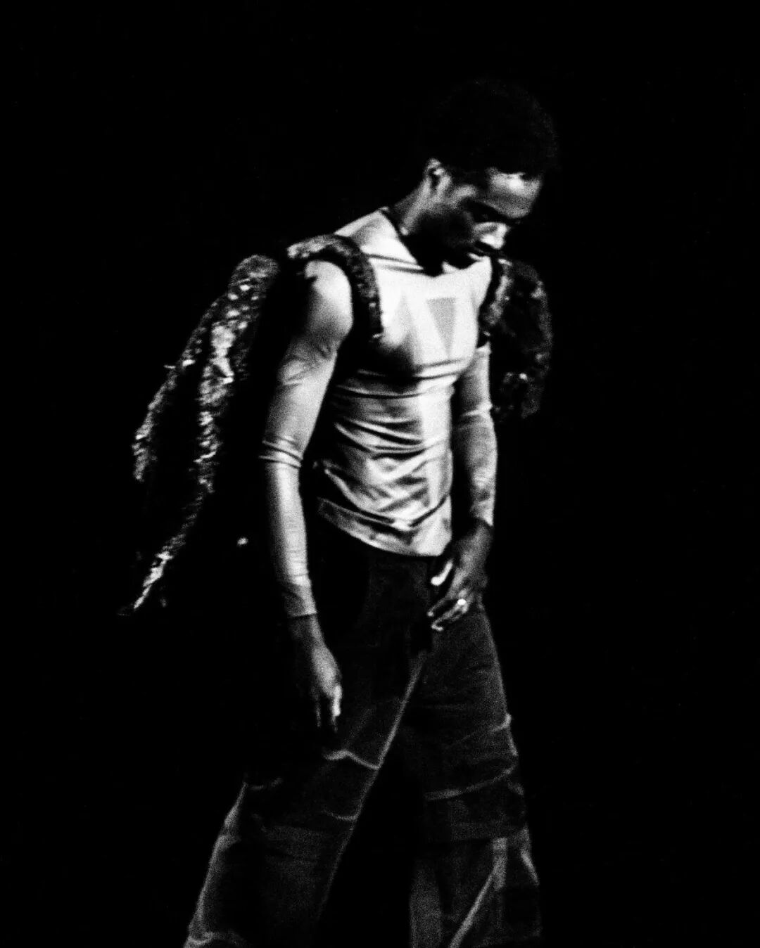 随后他将造型融入主题,用乳胶、废泡沫和金属丝制作了真人大小的龙翼,以及回收的菌丝体质地服装。